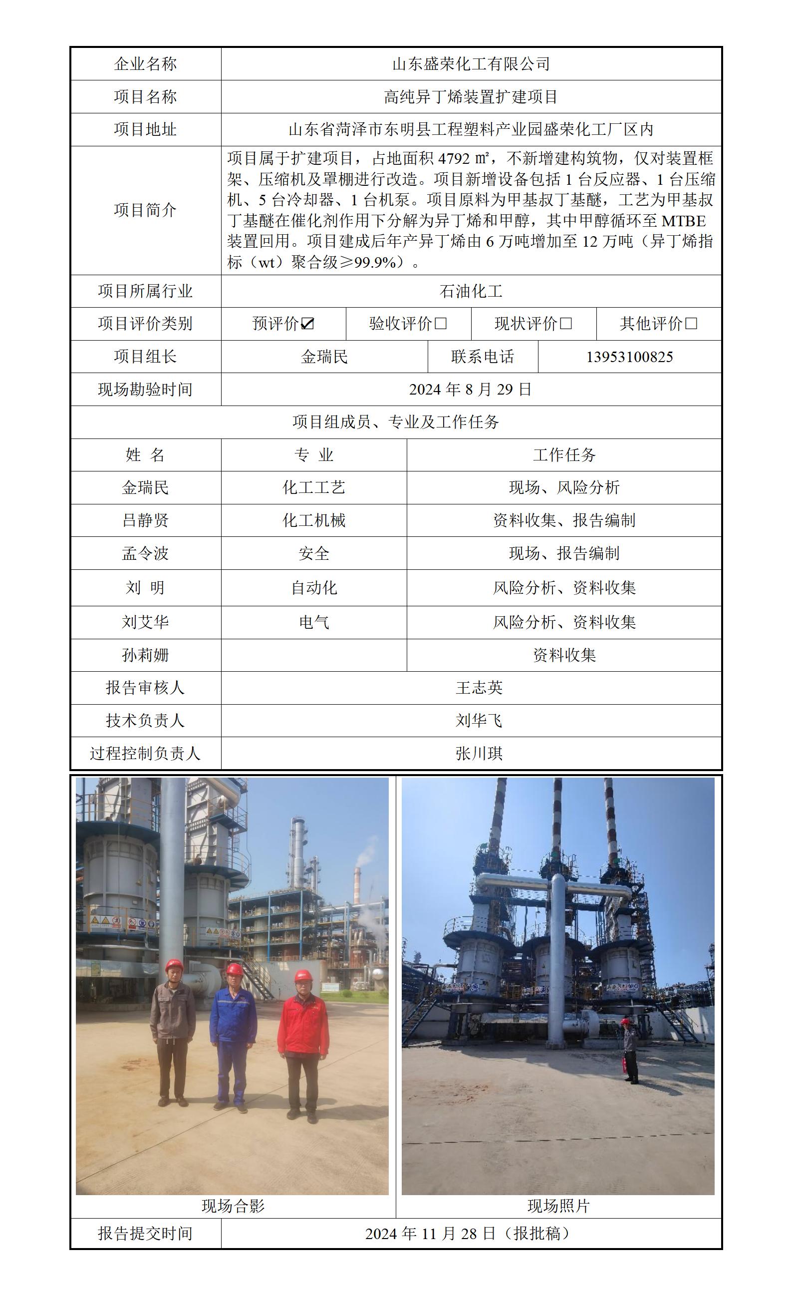 山东盛荣化工有限公司 安全评价报告信息公开