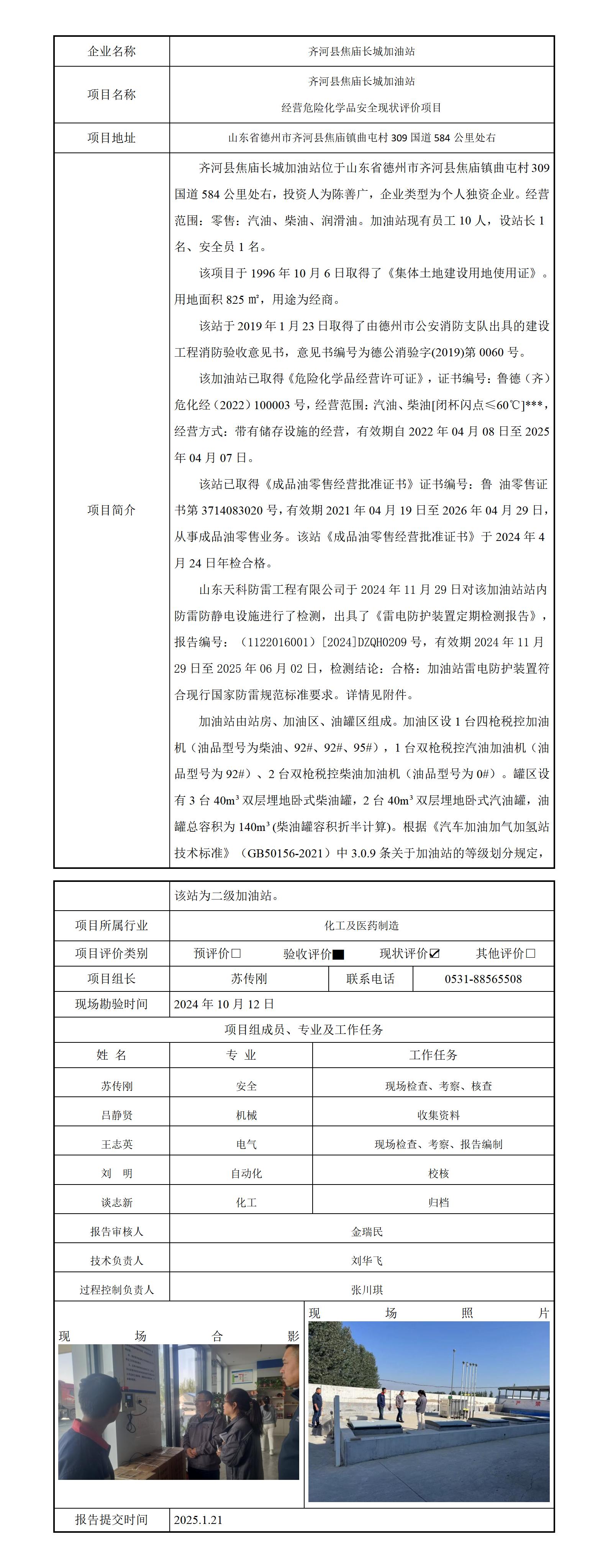 齐河县焦庙长城加油站安全评价报告信息公开