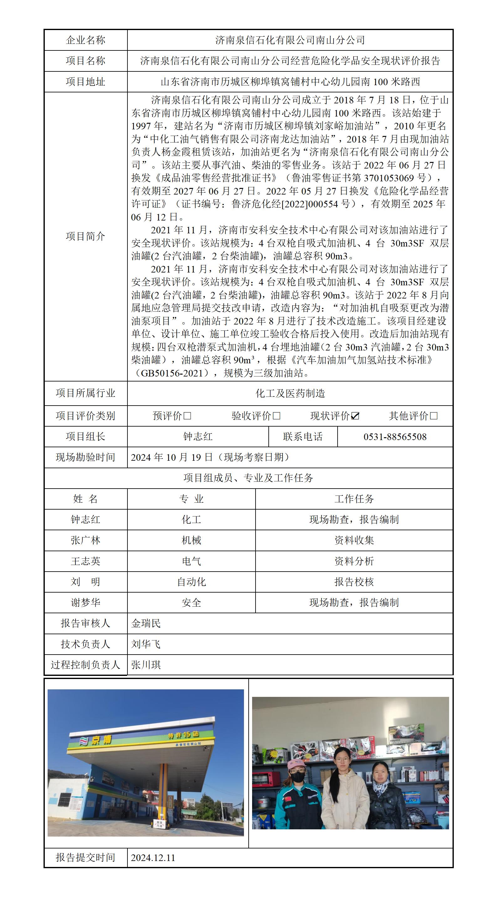 济南泉信石化有限公司南山分公司安全评价报告信息公开
