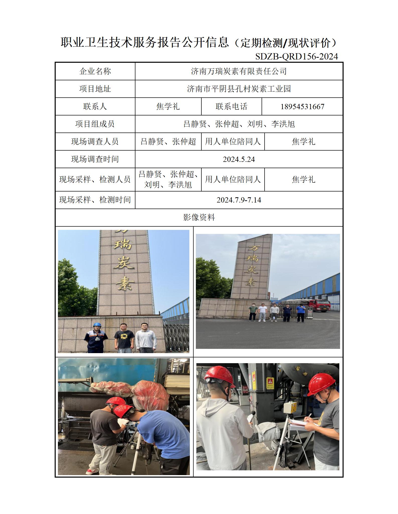 ZBZY24-XP-006济南万瑞炭素有限责任公司职业卫生技术服务报告公开信息