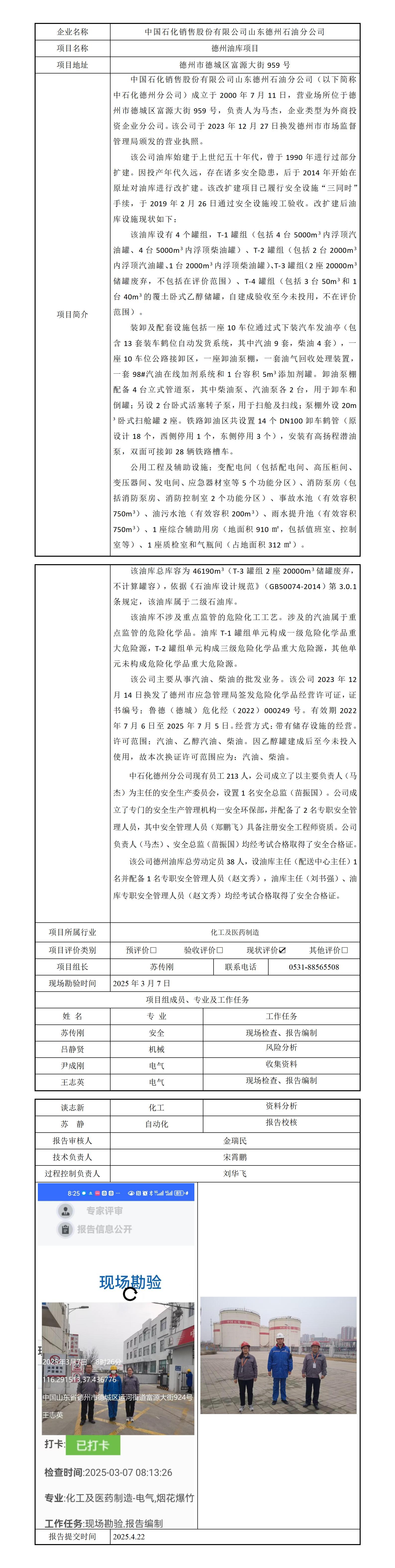 中国石化销售股份有限公司山东德州石油分公司安全评价报告信息公开