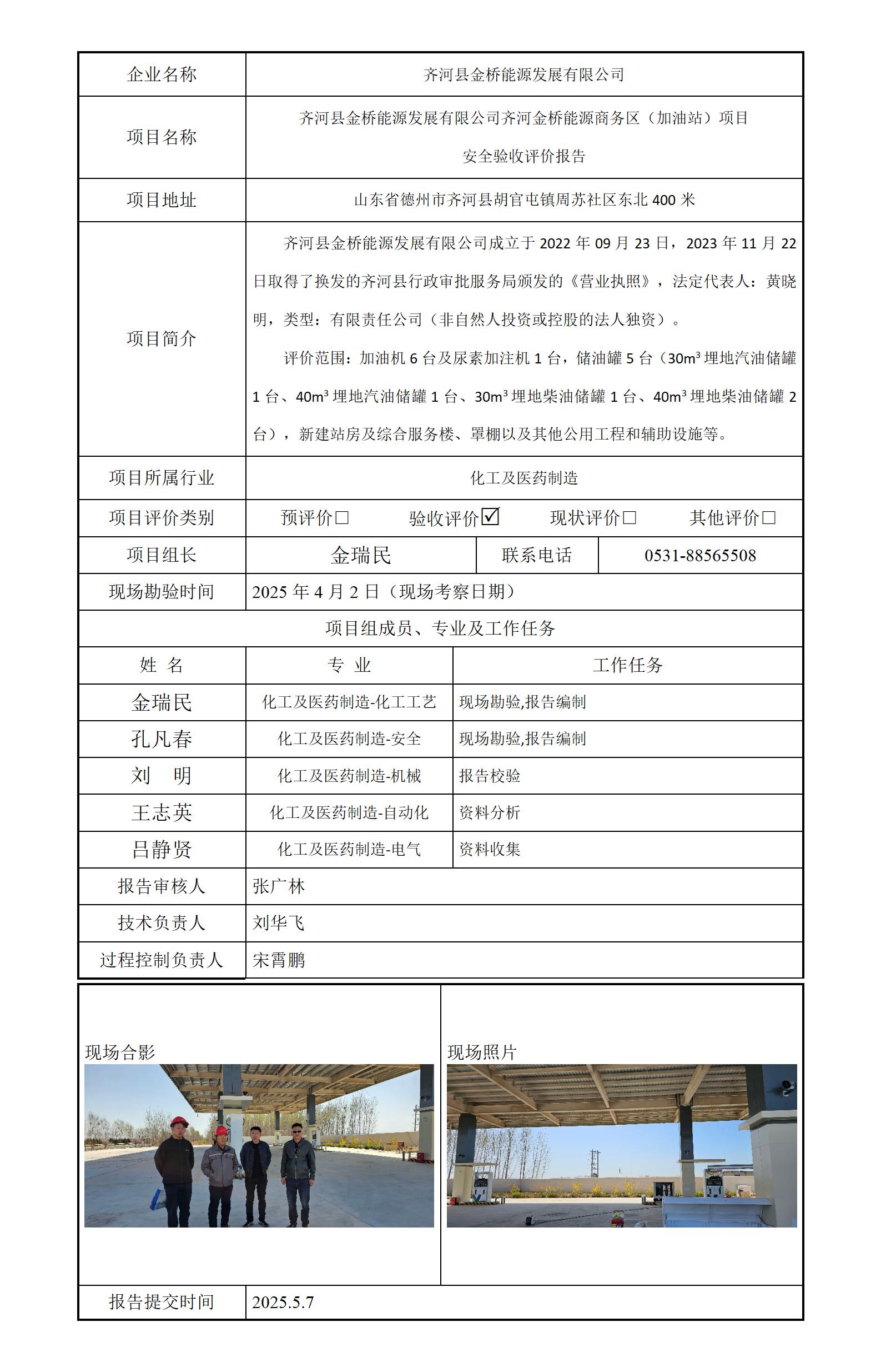 齐河县金桥能源发展有限公司安全评价报告信息公开