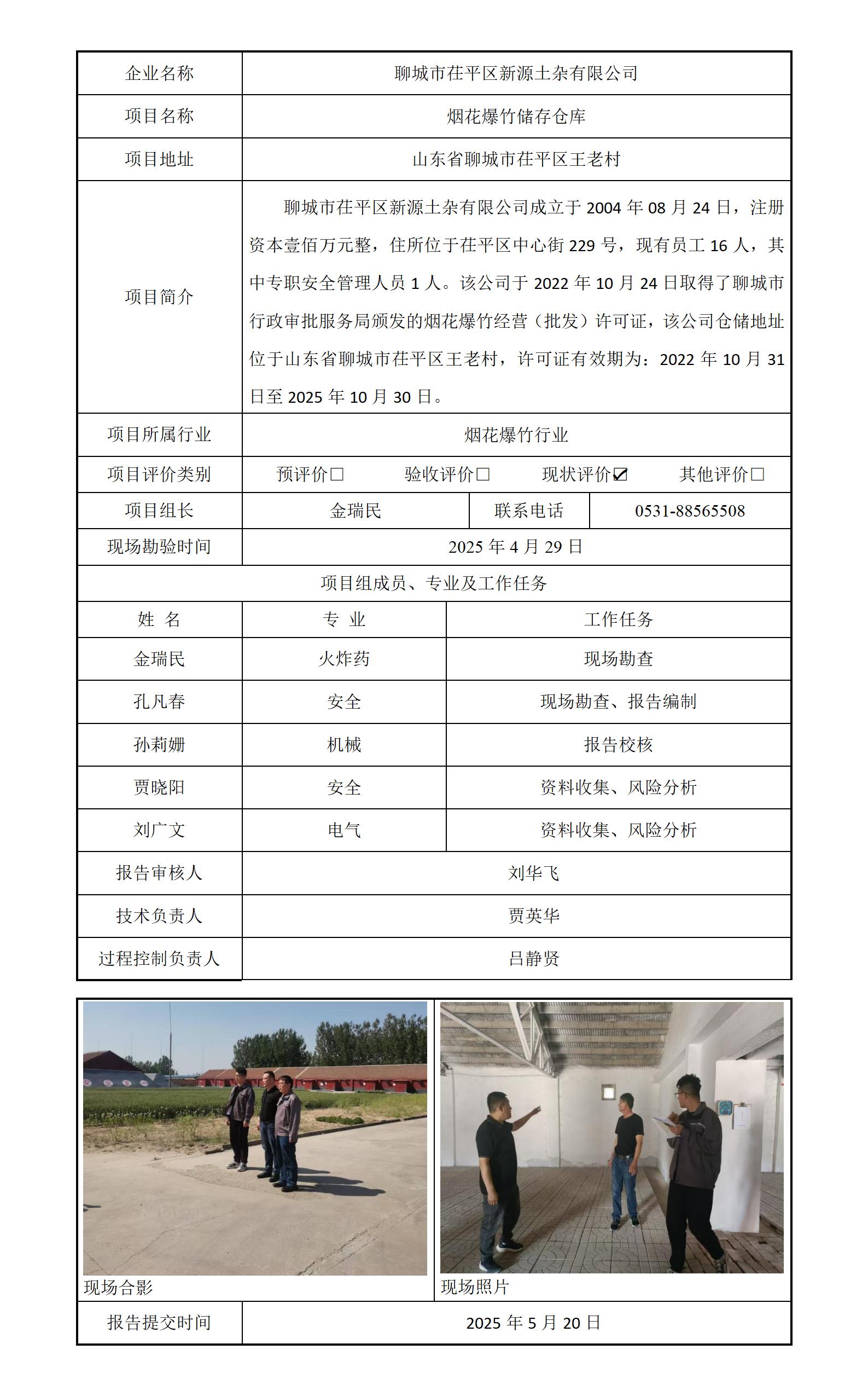 聊城市茌平区新源土杂有限公司安全评价报告信息公开
