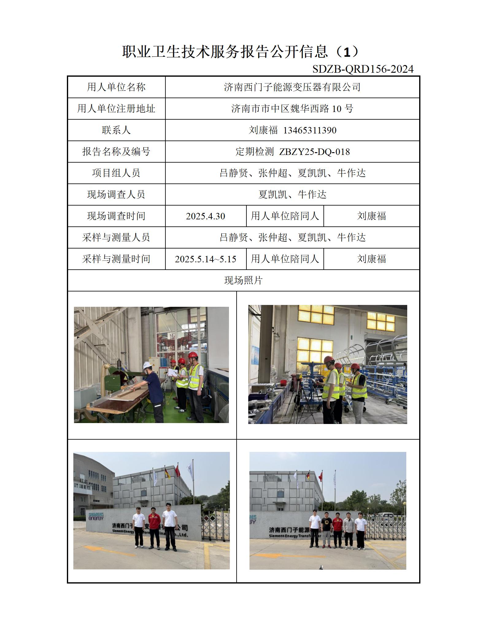 ZBZY25-DQ-018济南西门子能源变压器有限公司 信息公开