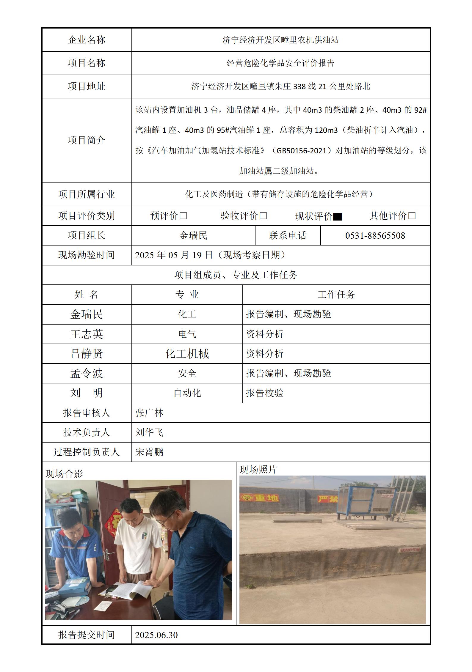 济宁经济开发区疃里农机供油站安全评价报告信息公开