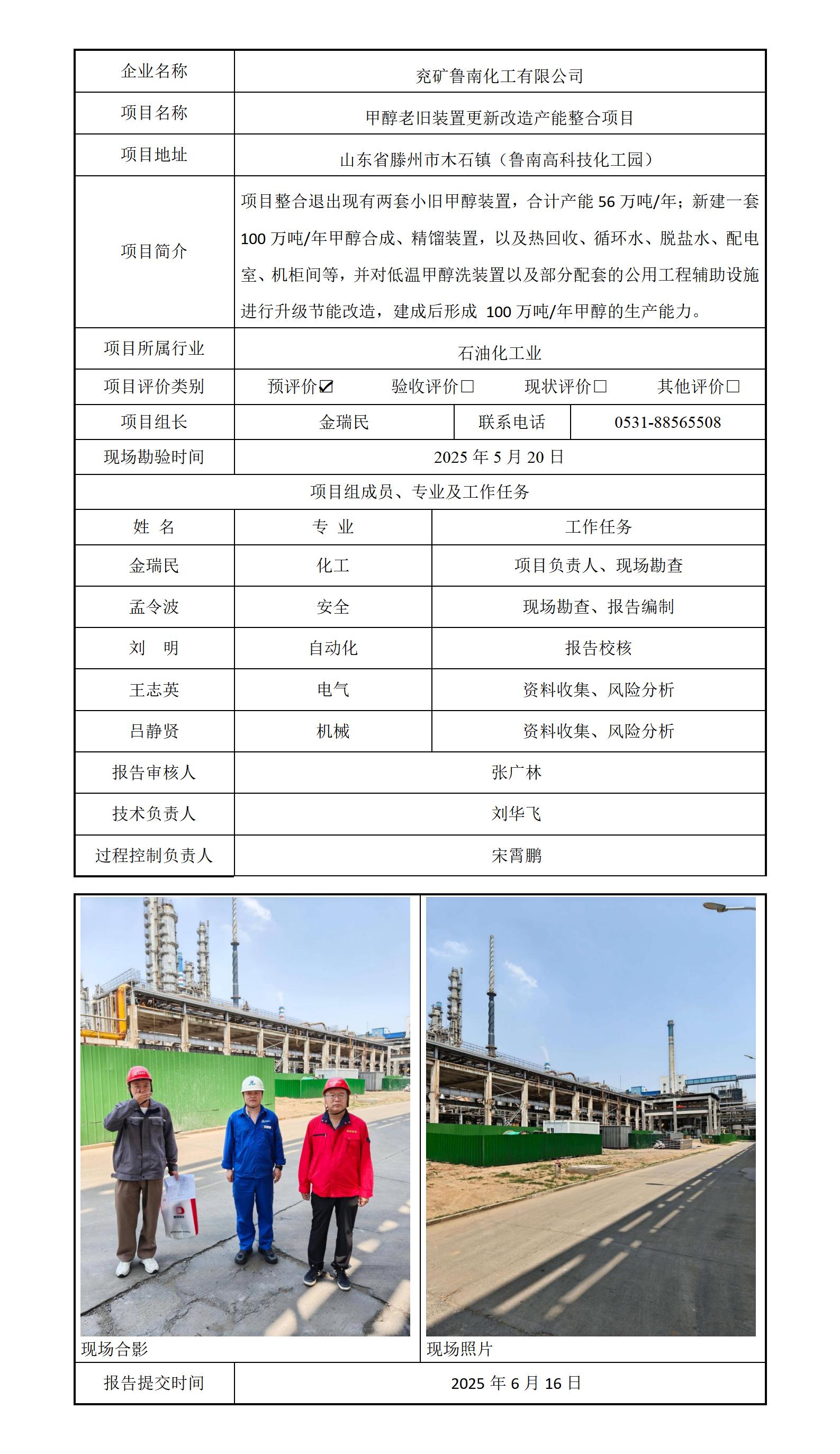 兖矿鲁南化工有限公司甲醇老旧装置更新改造产能整合项目安全预评价信息公开
