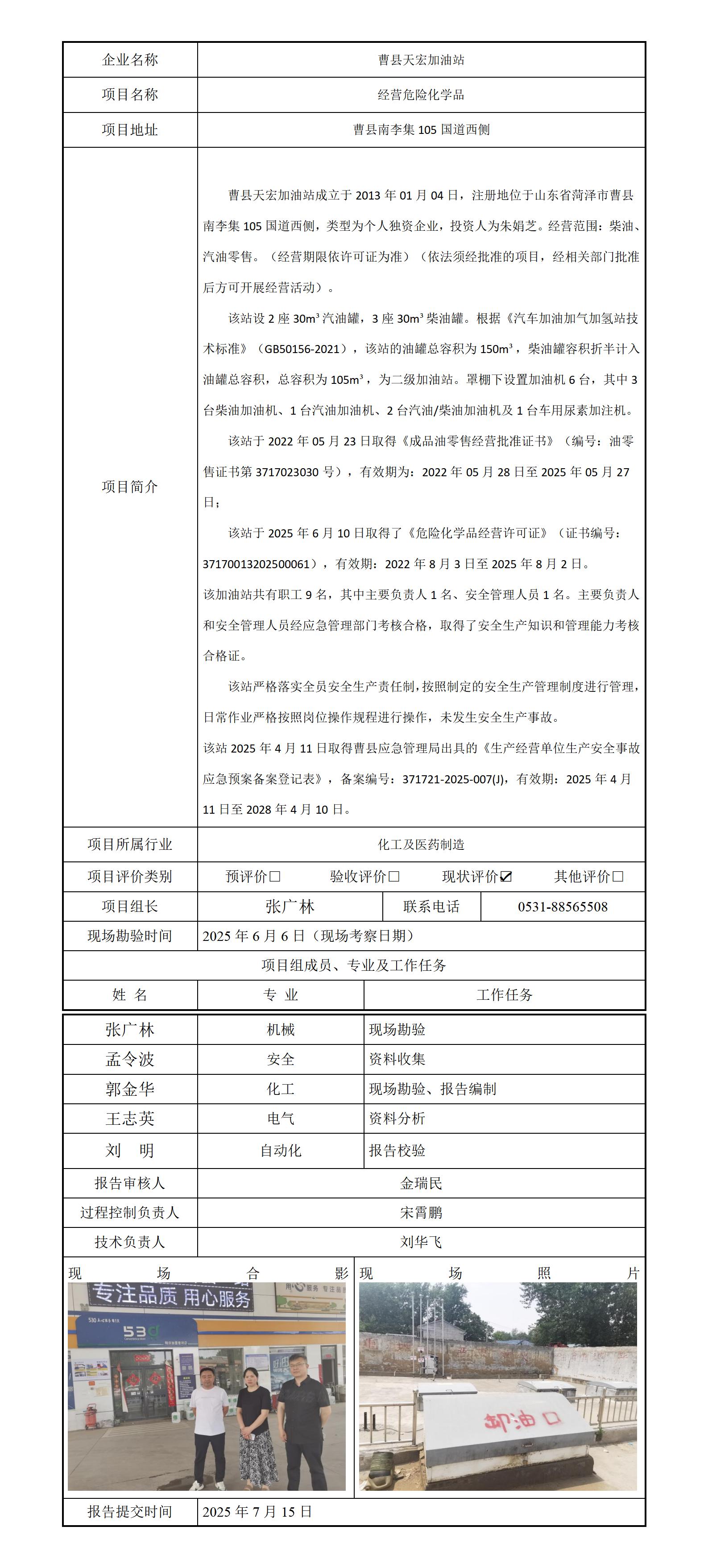 曹县天宏加油站安全评价报告信息公开