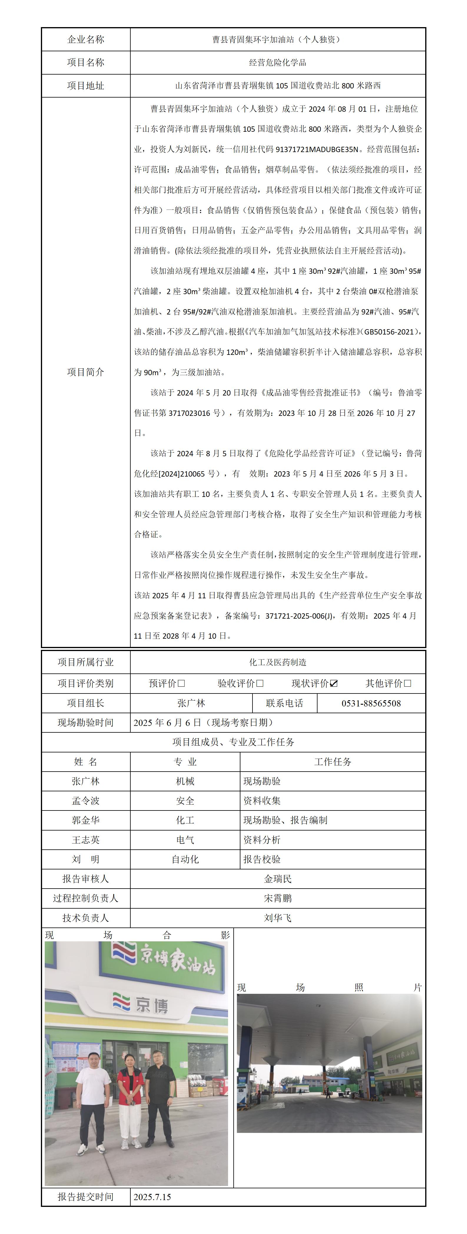曹县青固集环宇加油站(个人独资)安全评价报告信息公开