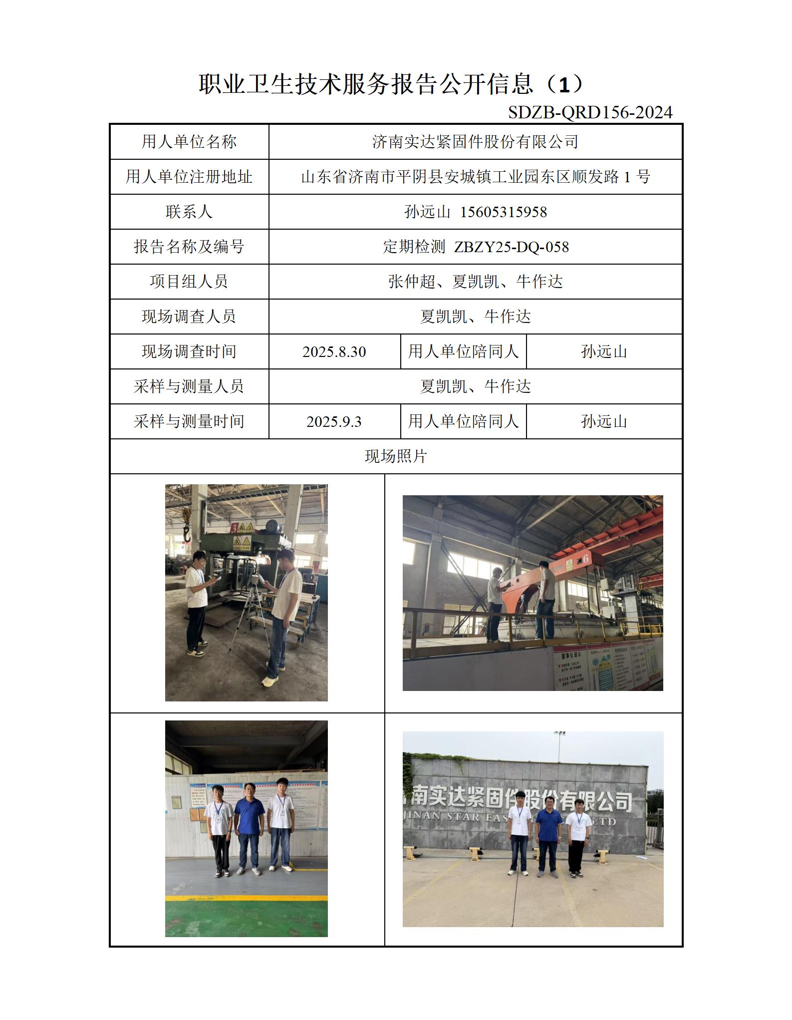 ZBZY25-DQ-058济南实达紧固件股份有限公司 信息公开