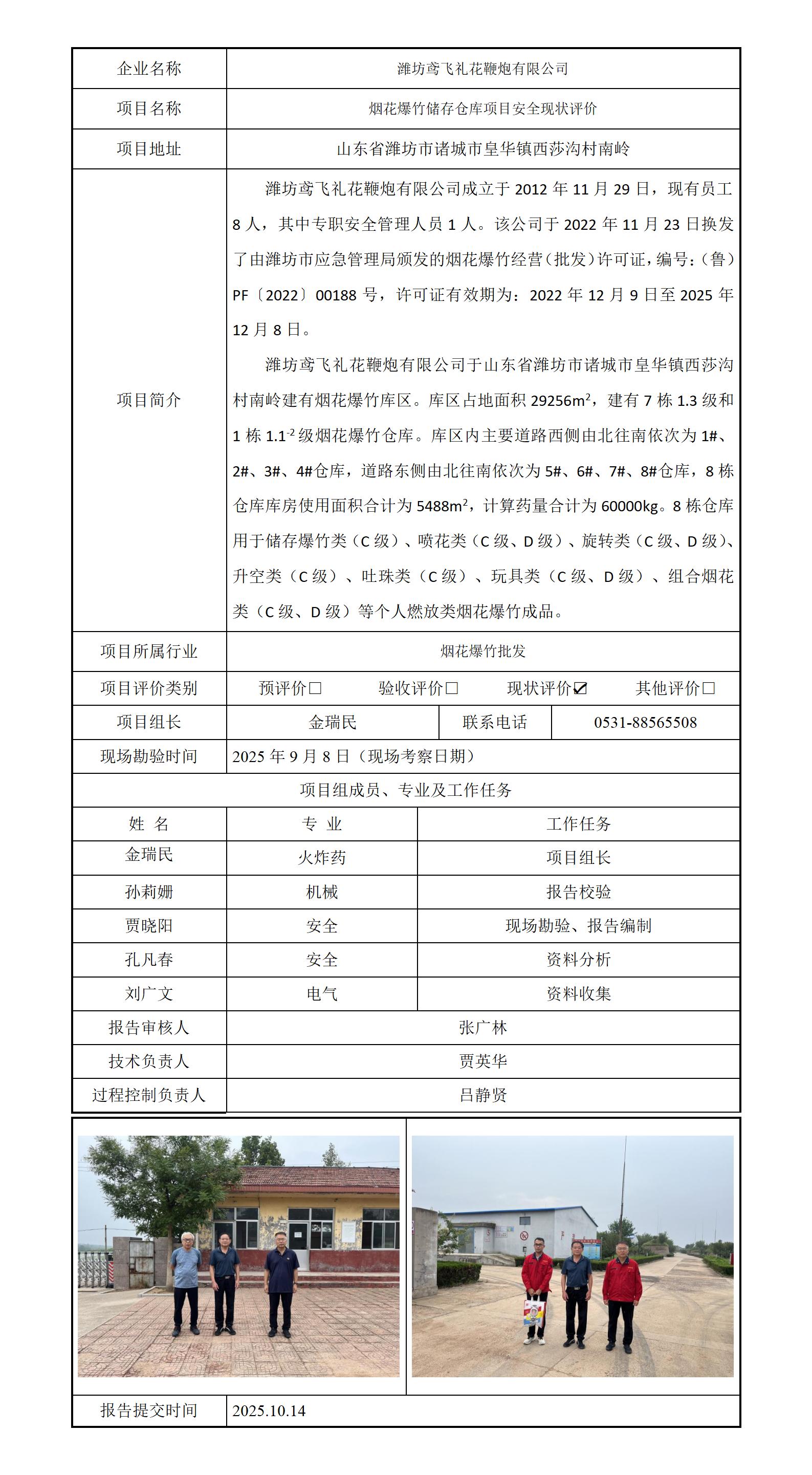 安全评价报告网上公示--潍坊鸢飞礼花鞭炮有限公司