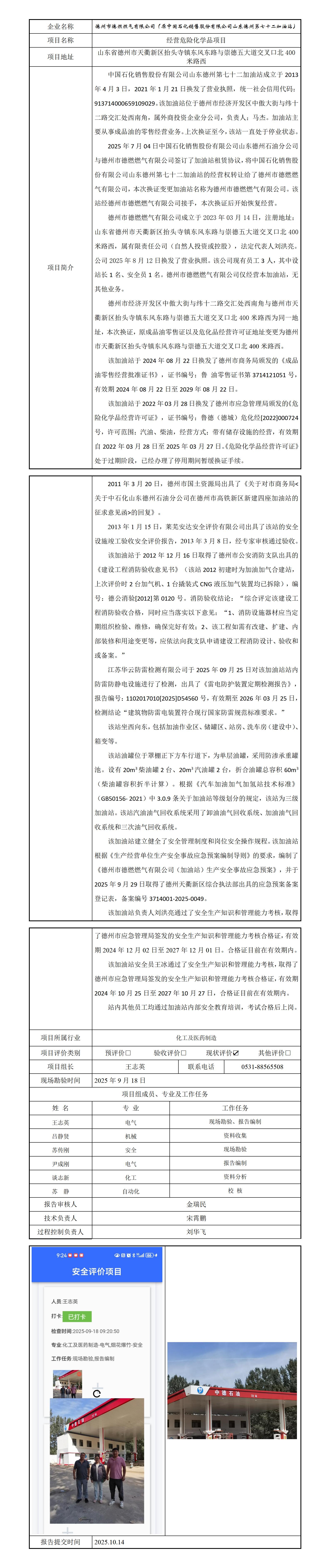 德州市德燃燃气有限公司(原中国石化销售股份有限公司山东德州第七十二加油站) 安全评价报告信息公开