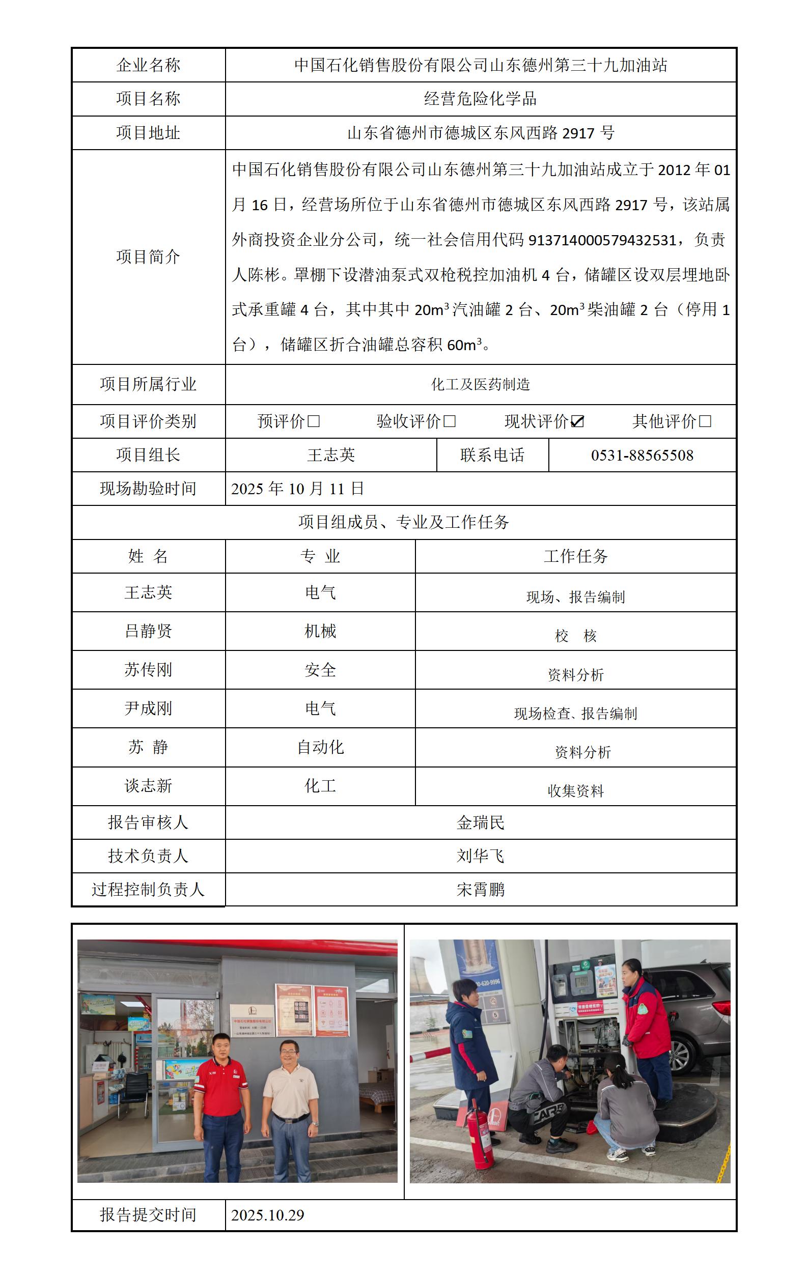 中国石化销售股份有限公司山东德州第三十九加油站安全评价报告信息公开