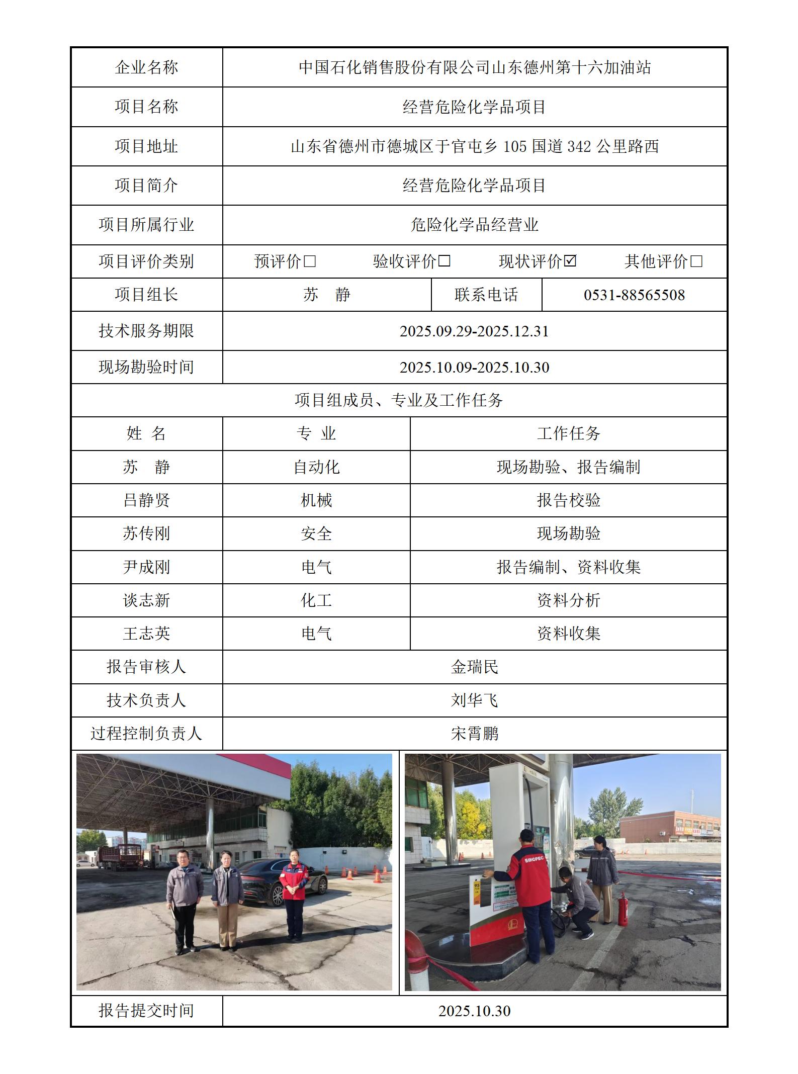 中国石化销售股份有限公司山东德州第十六加油站安全评价报告信息公开