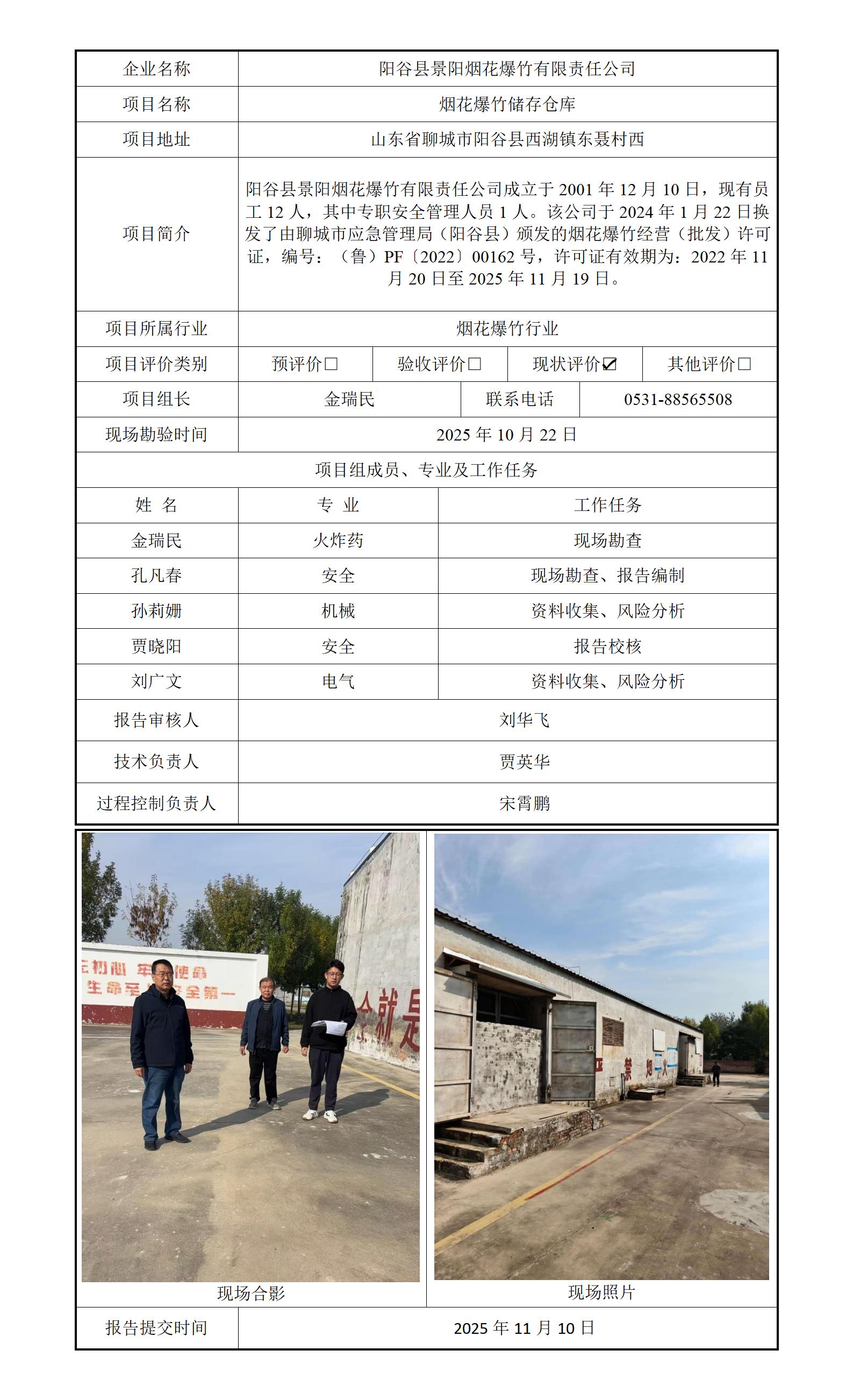 阳谷县景阳烟花爆竹有限责任公司 安全评价报告信息公开
