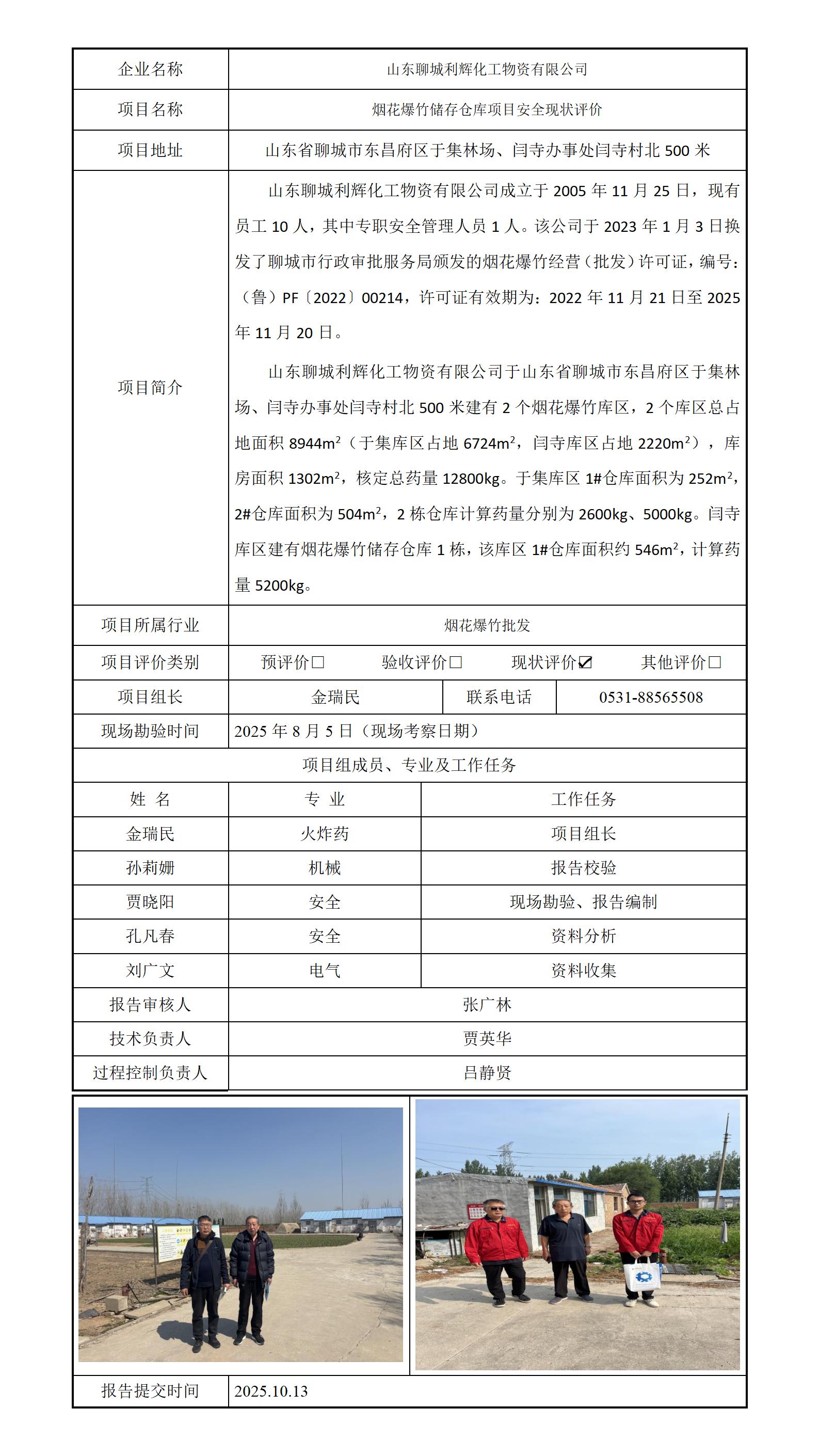 安全评价报告网上公示--山东聊城利辉化工物资有限公司