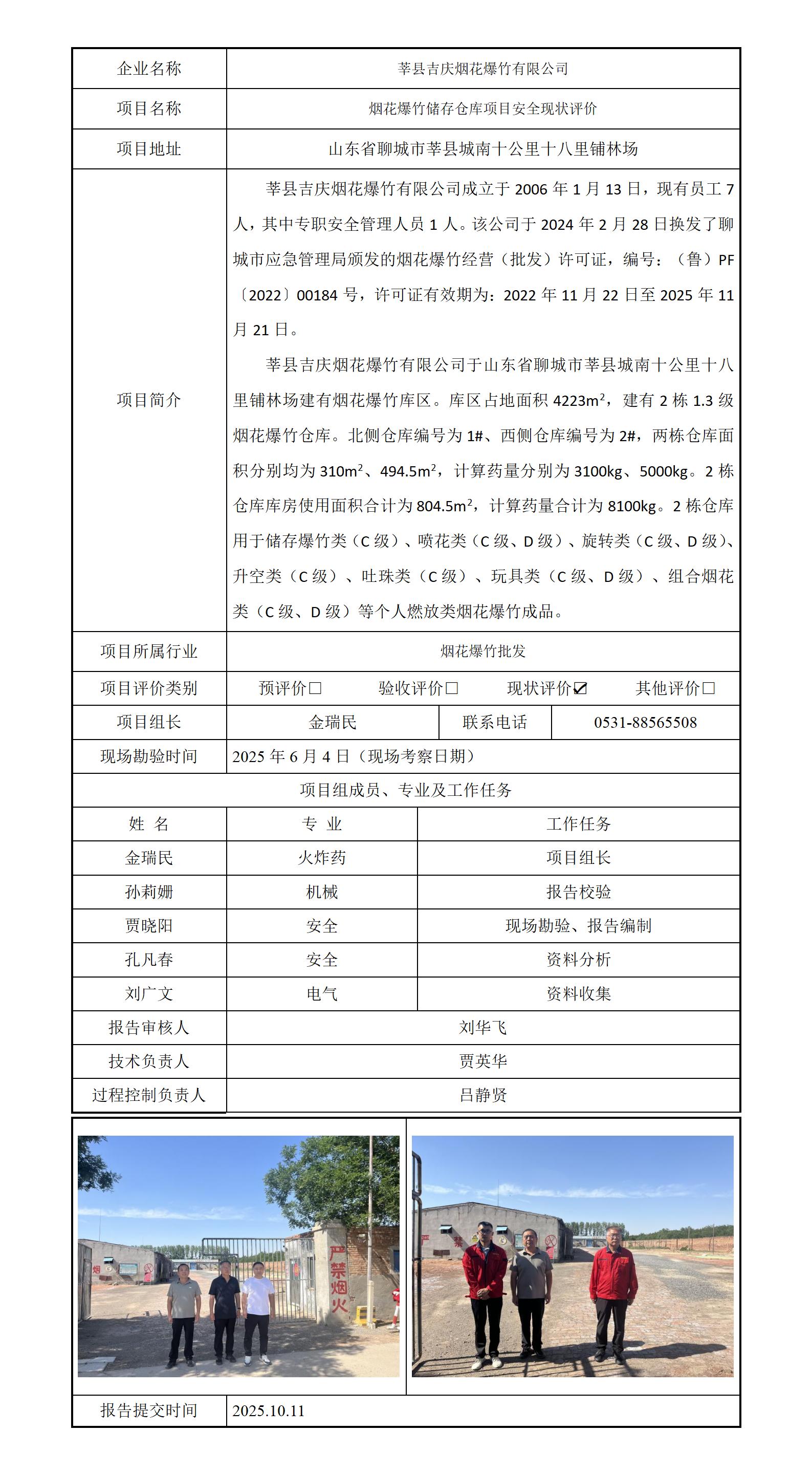 安全评价报告网上公示--莘县吉庆烟花爆竹有限公司