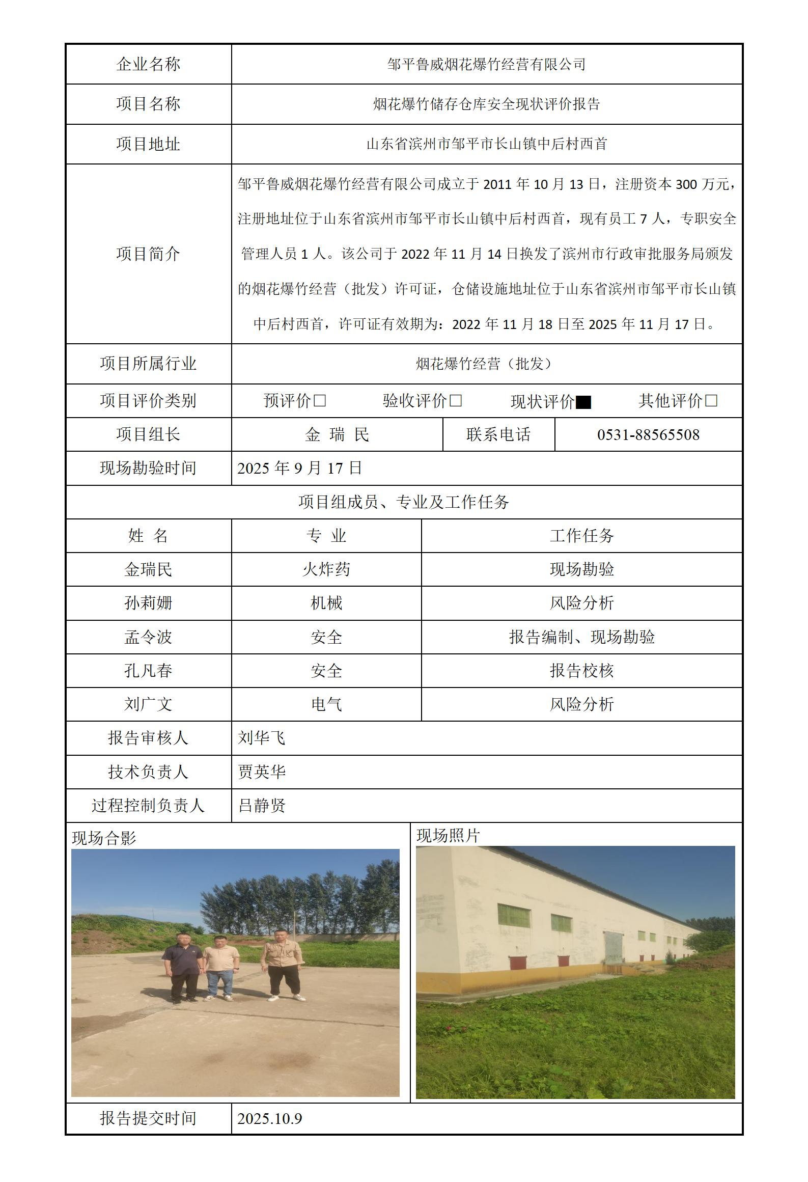 邹平鲁威烟花爆竹经营有限公司安全评价报告信息公开
