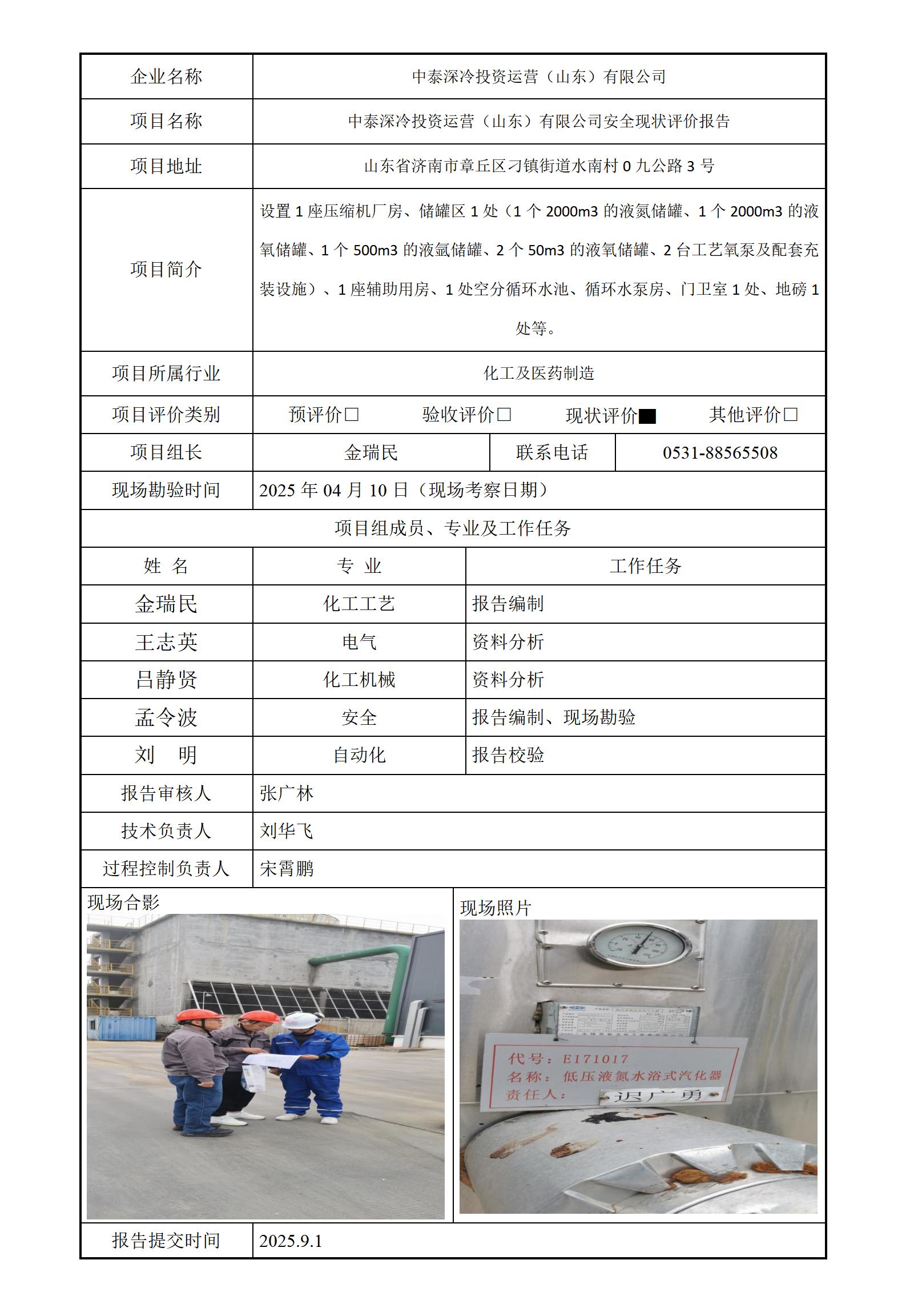 中泰深冷投资运营(山东)有限公司安全评价报告信息公开