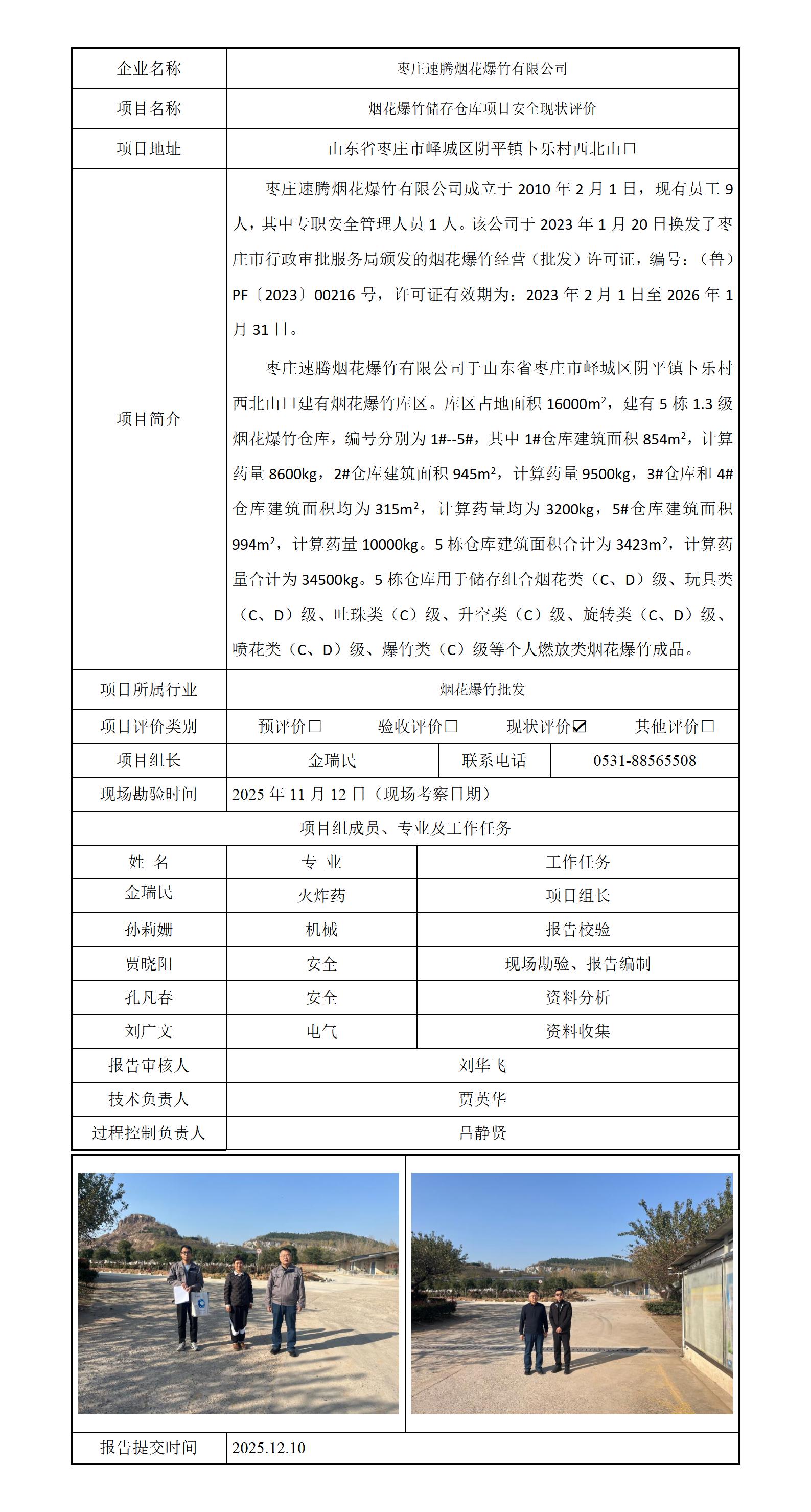 枣庄速腾烟花爆竹有限公司安全评价报告信息公开