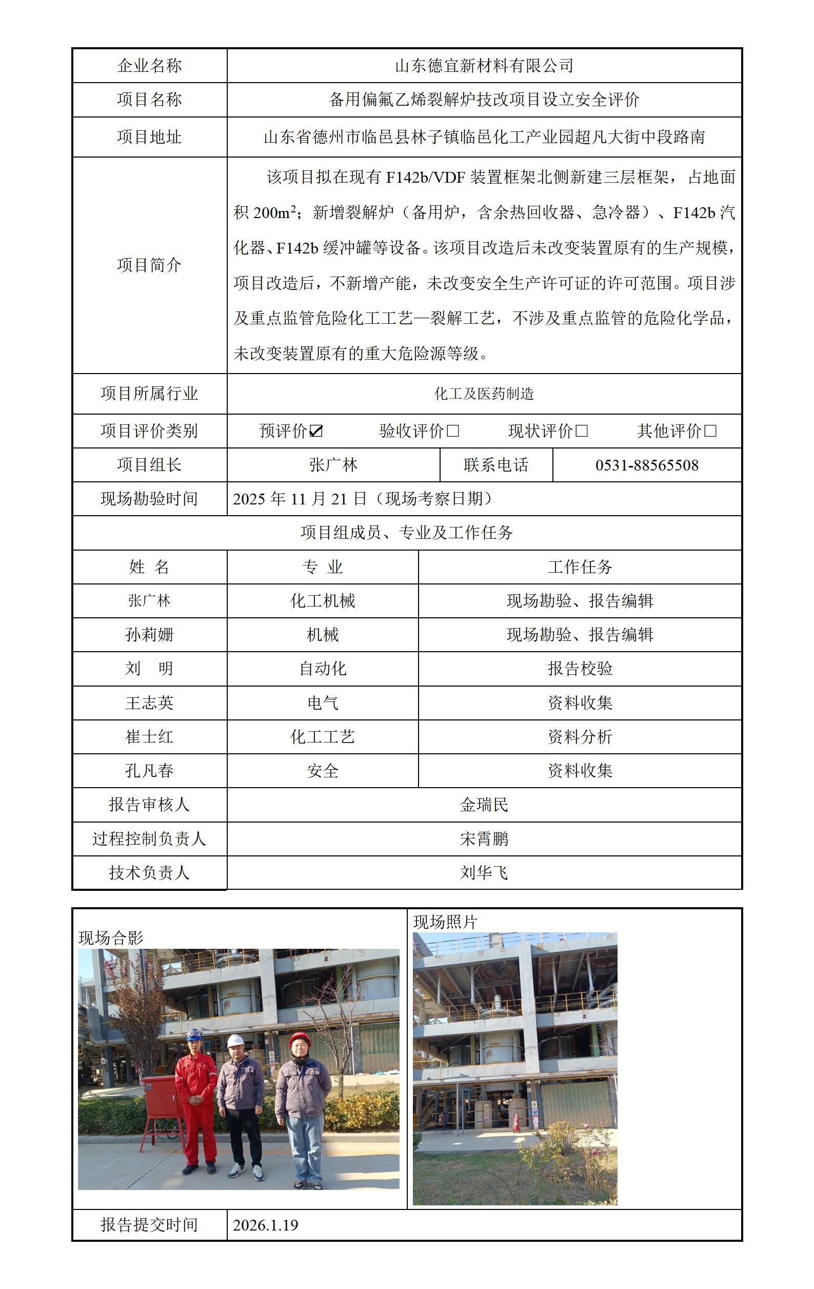 山东德宜新材料有限公司安全评价报告信息公开