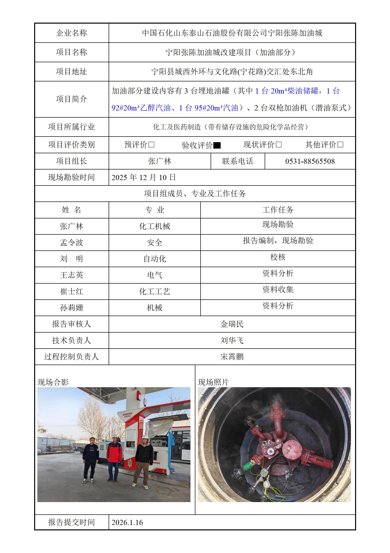 中国石化山东泰山石油股份有限公司宁阳张陈加油城安全评价报告信息公开
