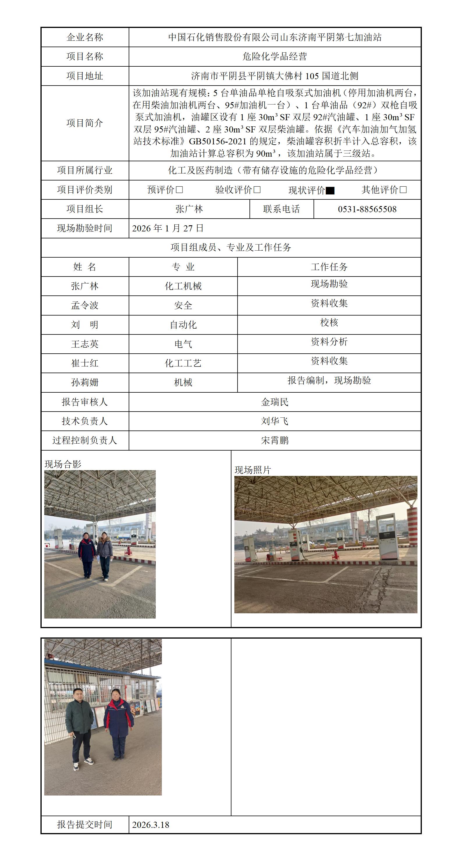 中国石化销售股份有限公司山东济南平阴第七加油站安全评价报告信息公开