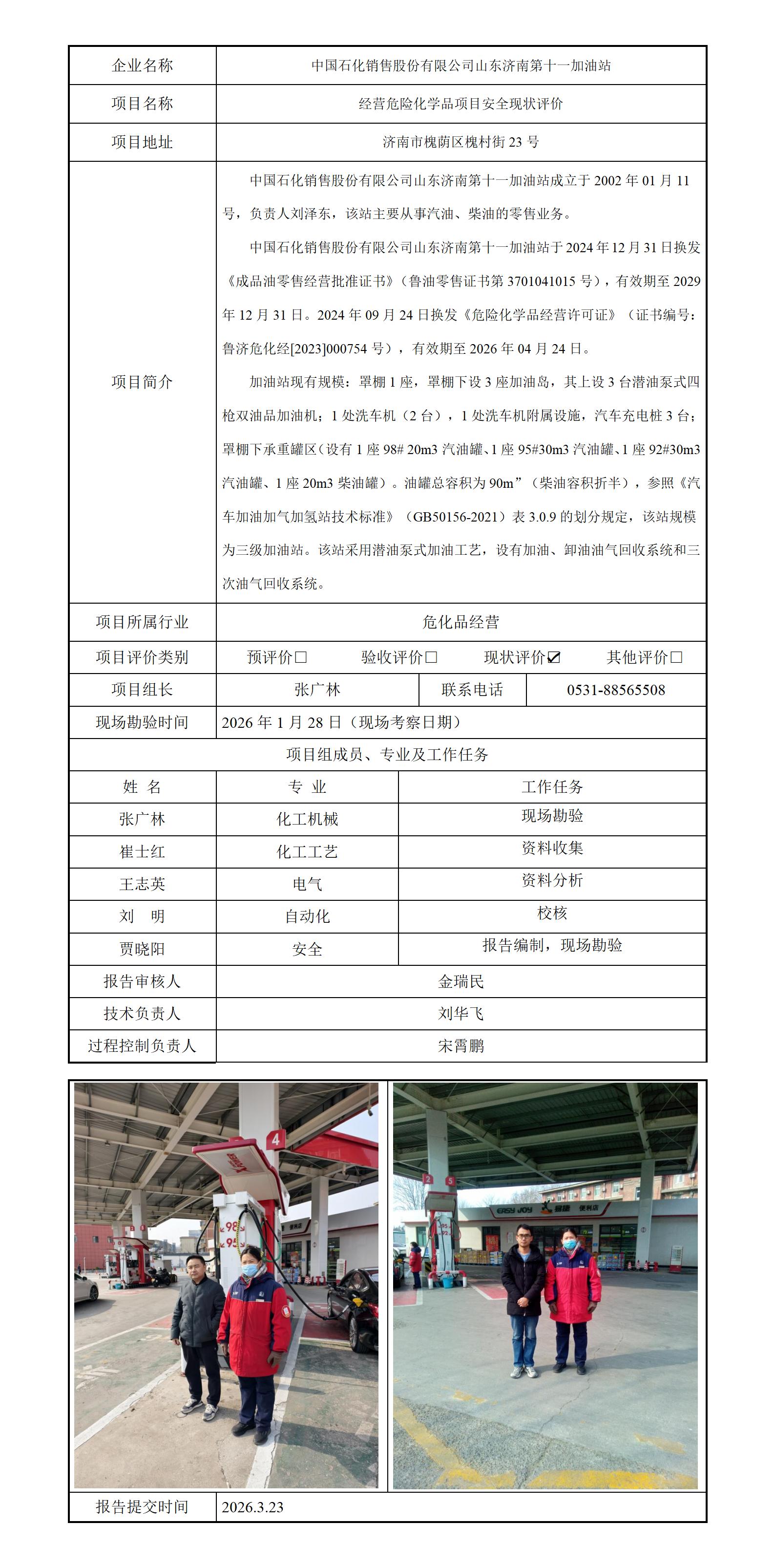 中国石化销售股份有限公司山东济南第十一加油站安全评价报告信息公开