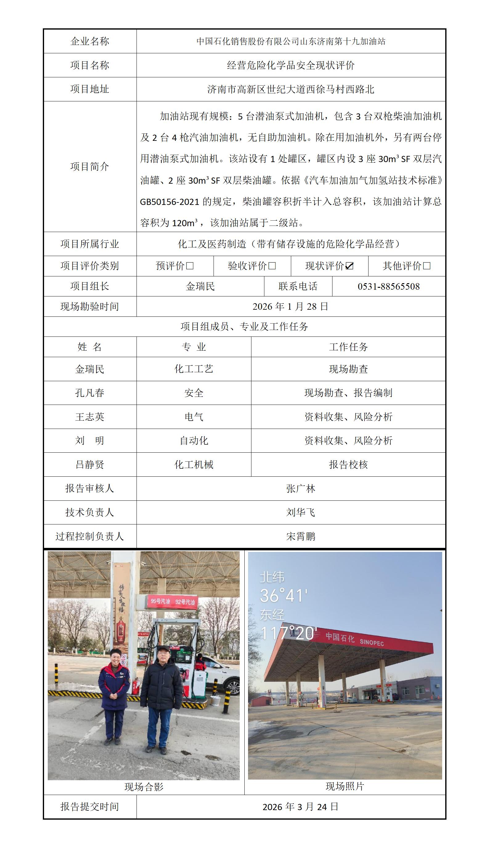 中国石化销售股份有限公司山东济南第十九加油站安全评价报告信息公开