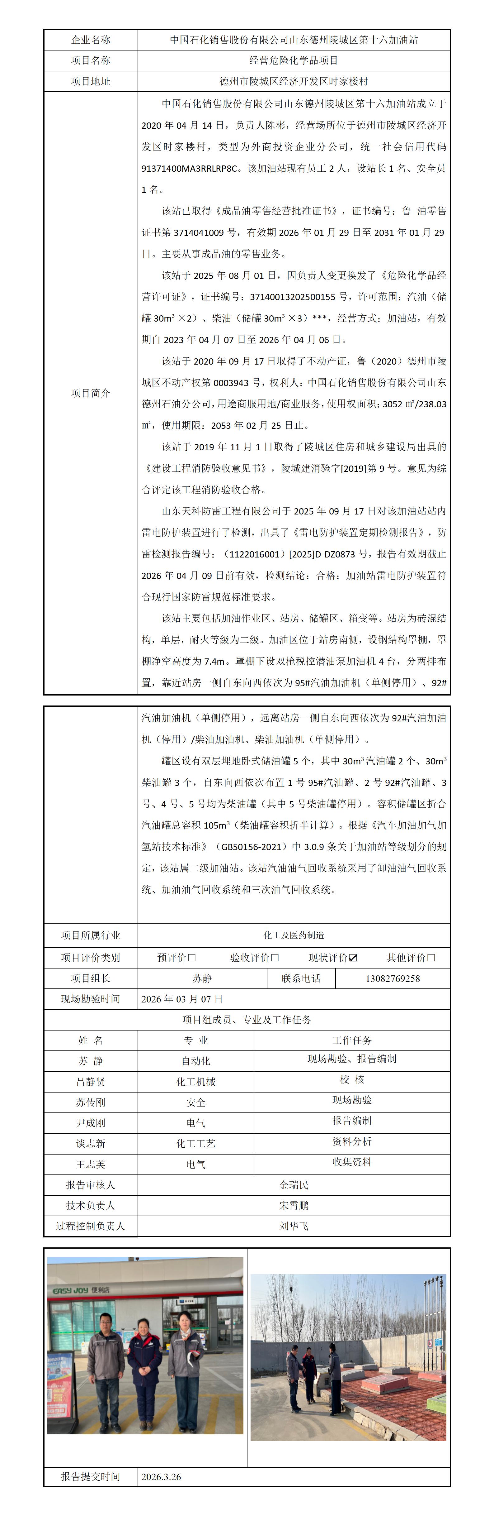 中国石化销售股份有限公司山东德州陵城区第十六加油站安全评价报告信息公开