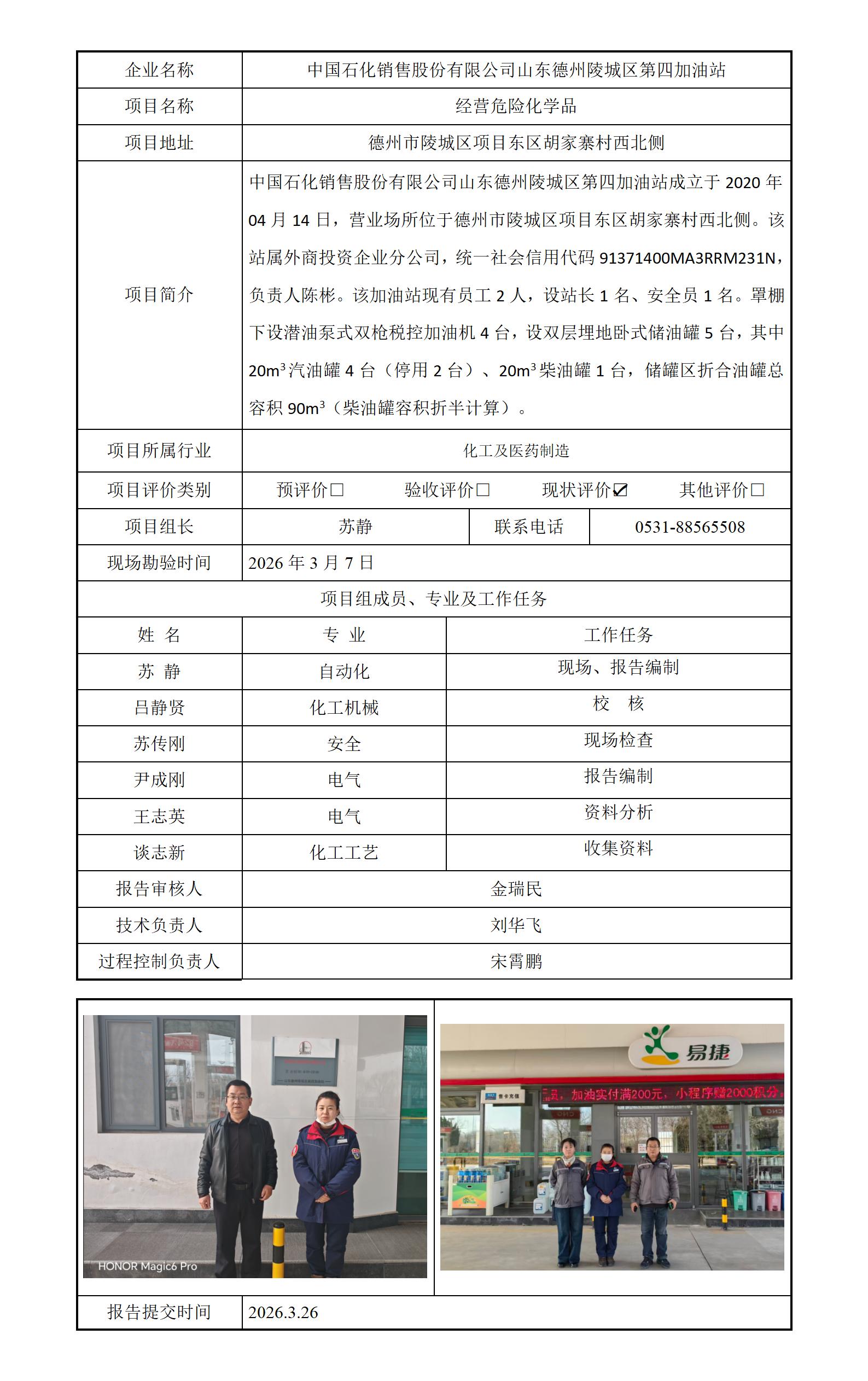 中国石化销售股份有限公司山东德州陵城区第四加油站安全评价报告信息公开