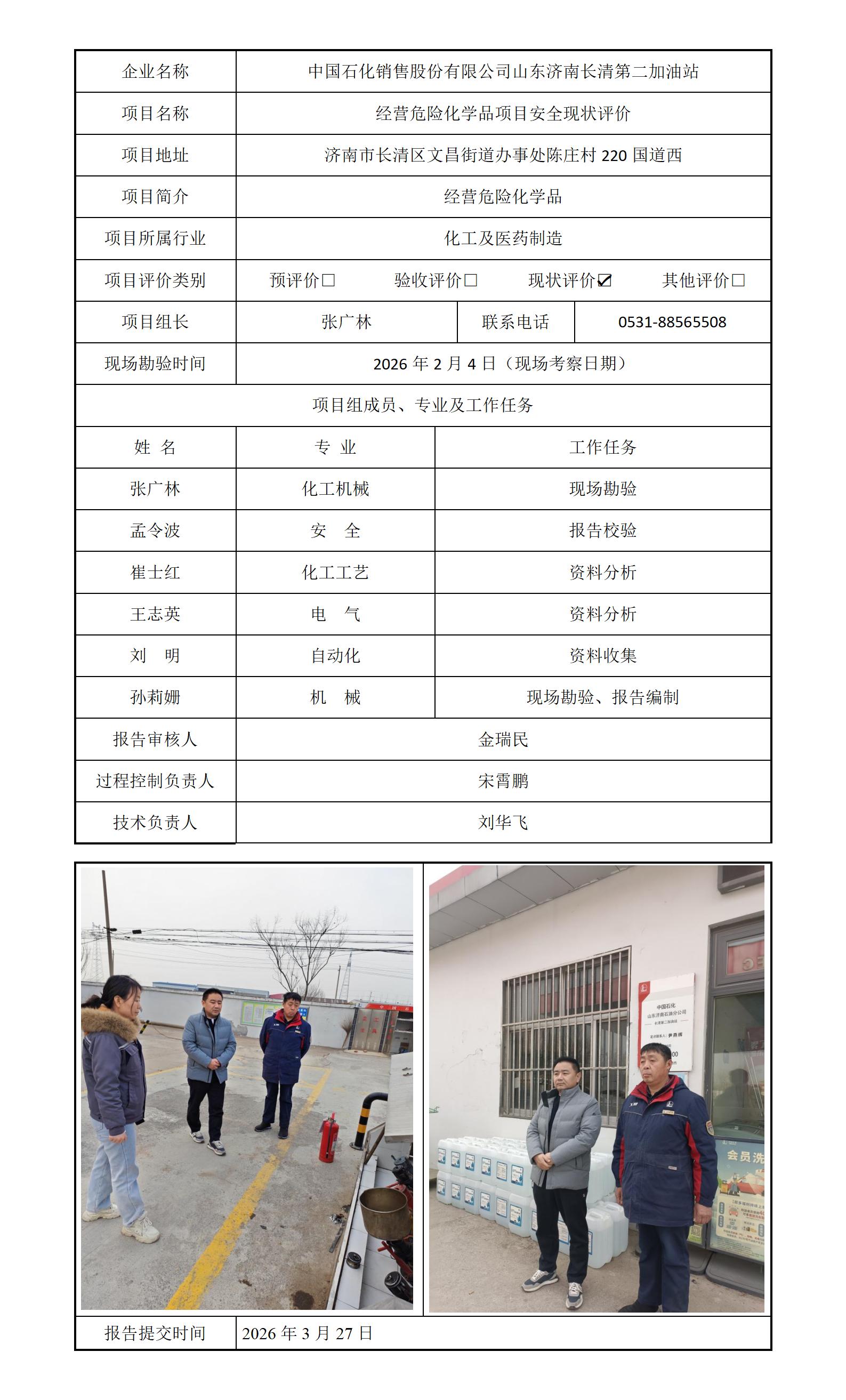 中国石化销售股份有限公司山东济南长清第二加油站安全评价报告信息公开