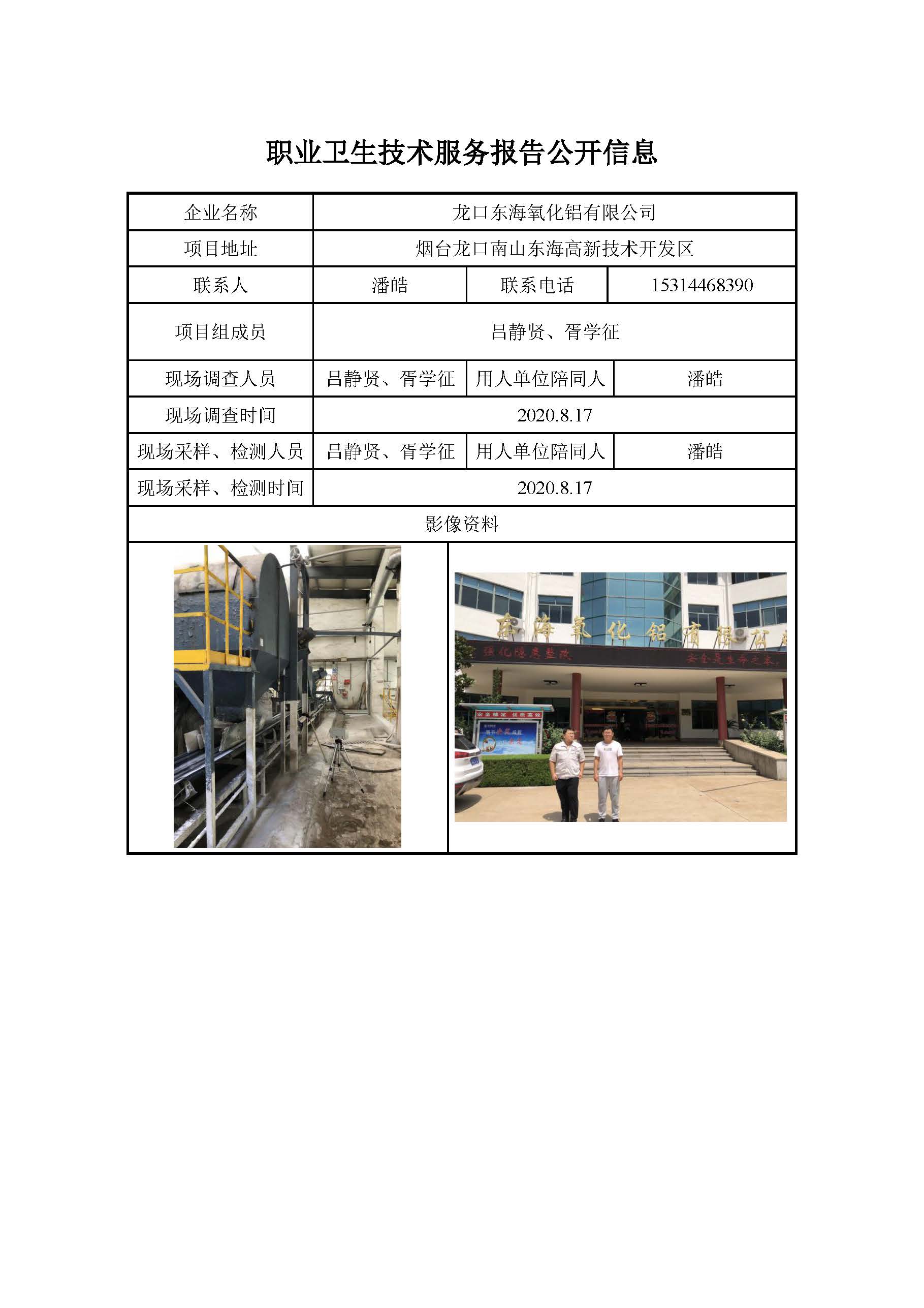 ZBZY20-DQ-097龙口东海氧化铝有限公司 职业病危害因素定期检测