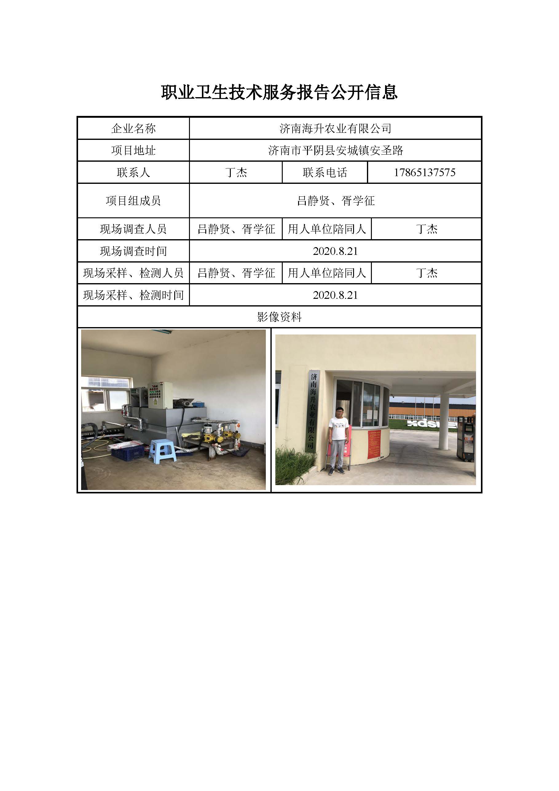 ZBZY20-DQ-098济南海升农业有限公司 职业病危害因素定期检测