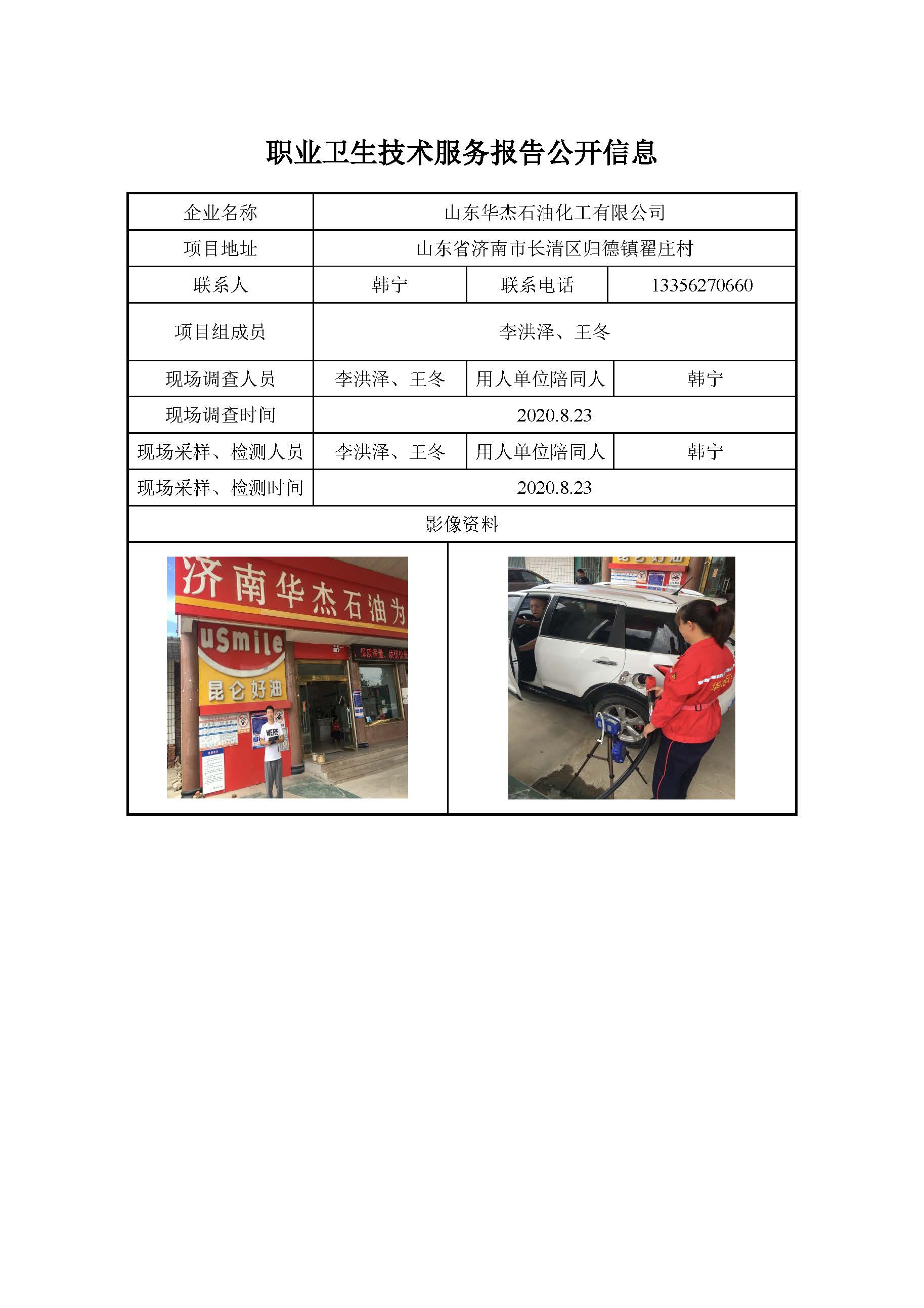 ZBZY20-DQ-099 山东华杰石油化工有限公司职业病危害因素定期检测