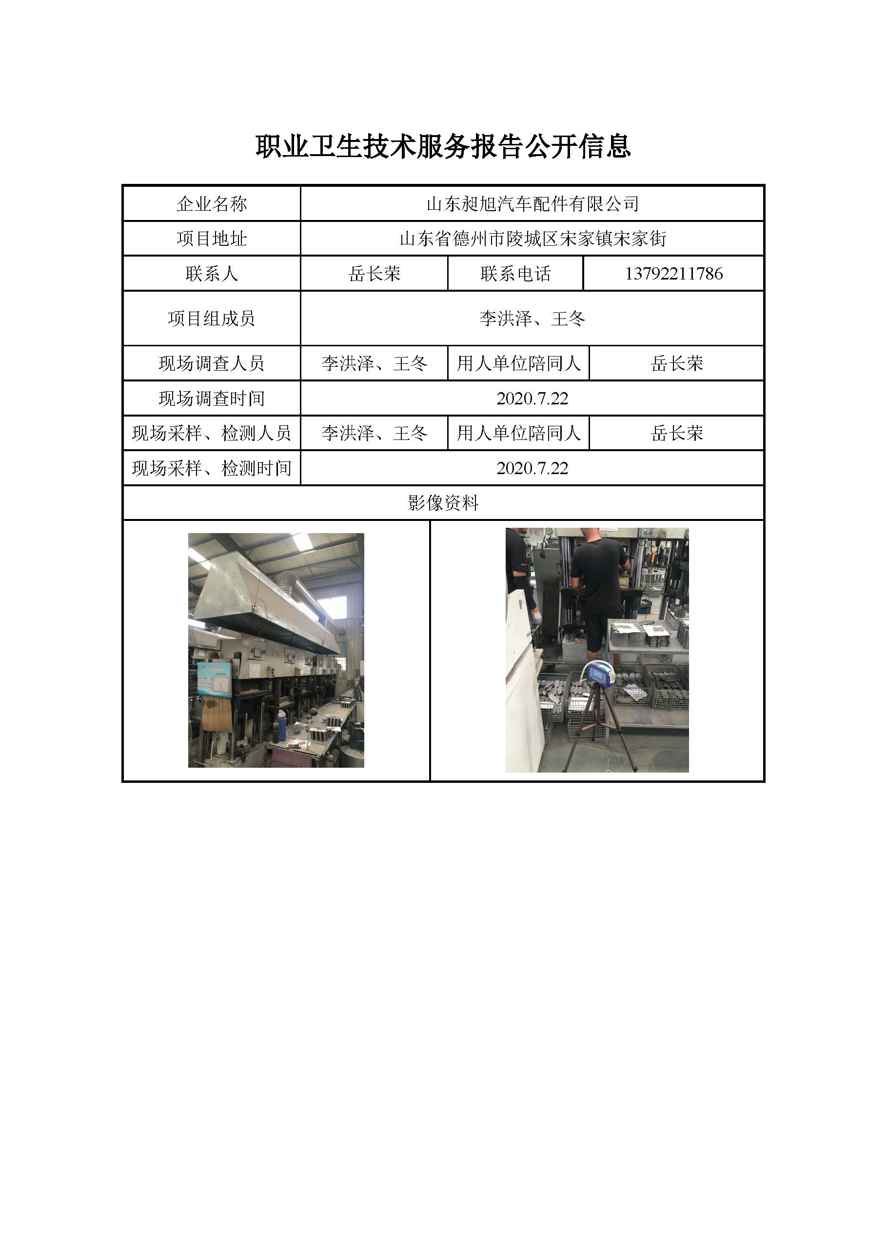 ZBZY20-DQ-100 山东昶旭汽车配件有限公司职业病危害因素定期检测