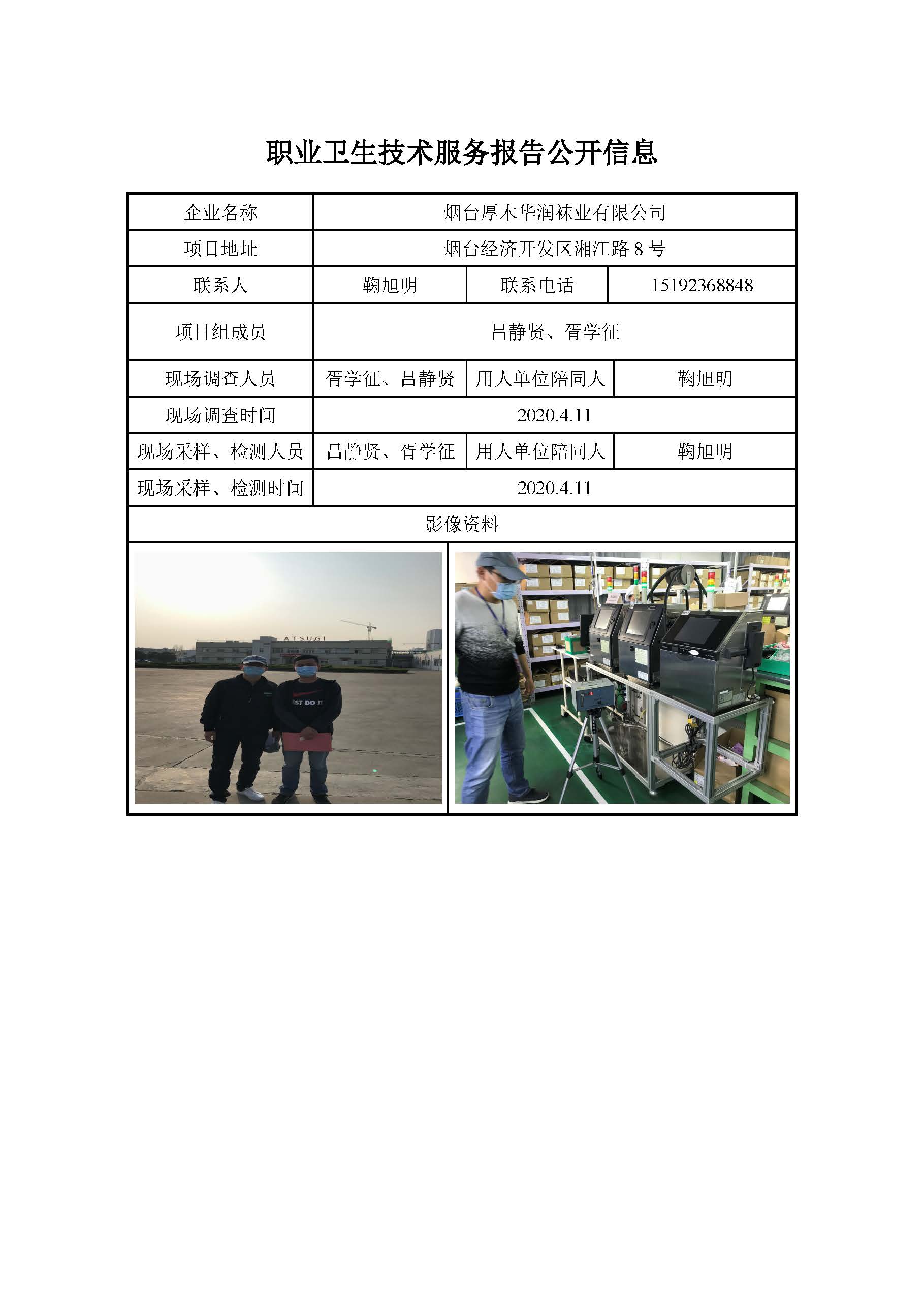 ZBZY20-DQ-103烟台厚木华润袜业有限公司日常检测报告