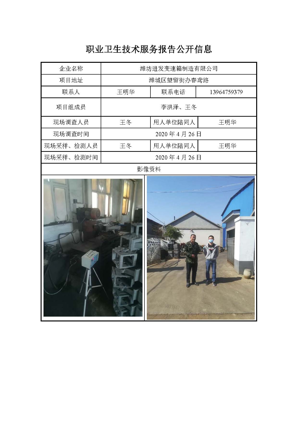 ZBZY20-DQ-108潍坊进发变速箱制造有限公司职业病危害因素定期检测
