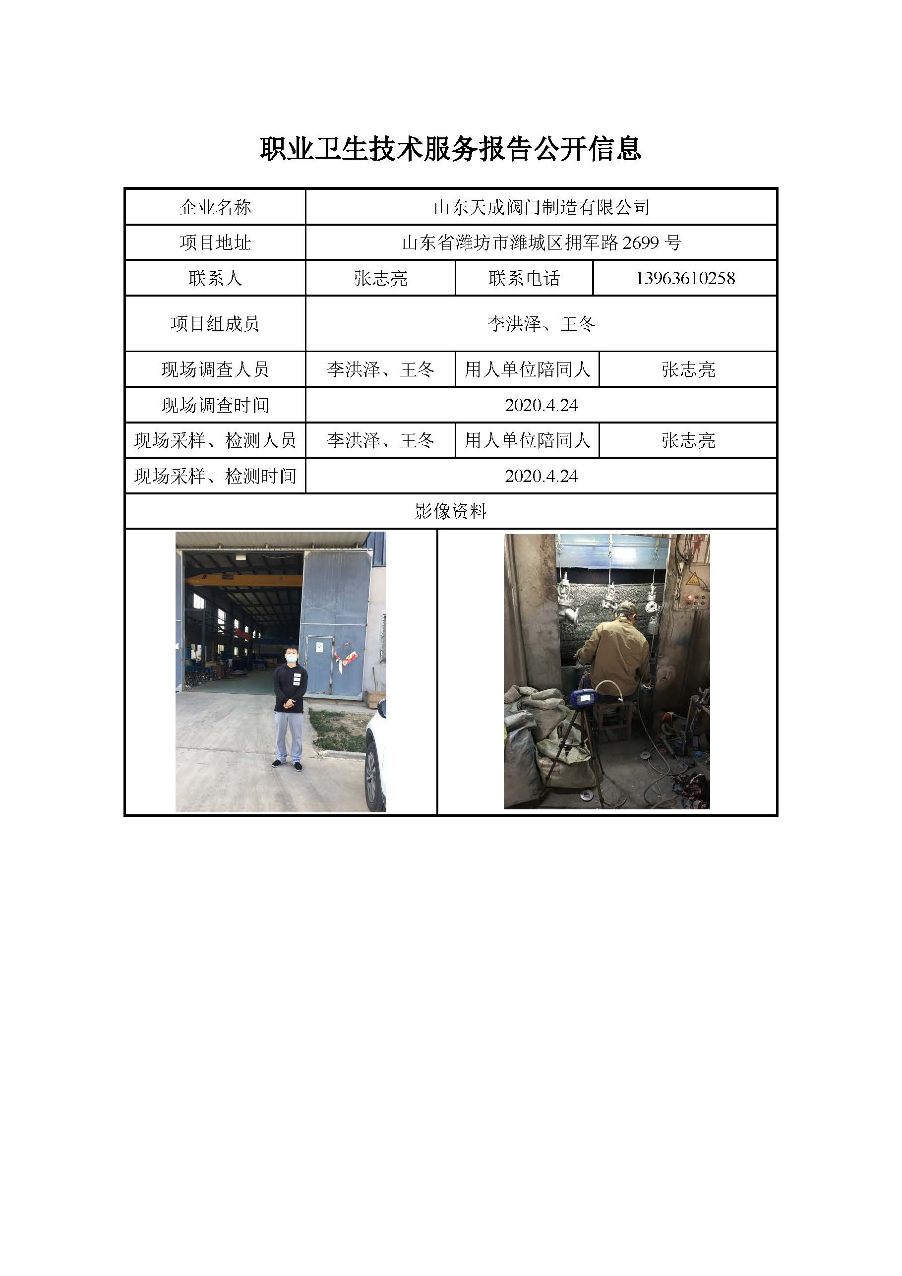 ZBZY20-DQ-112 山东天成阀门制造有限公司职业病危害因素定期检测