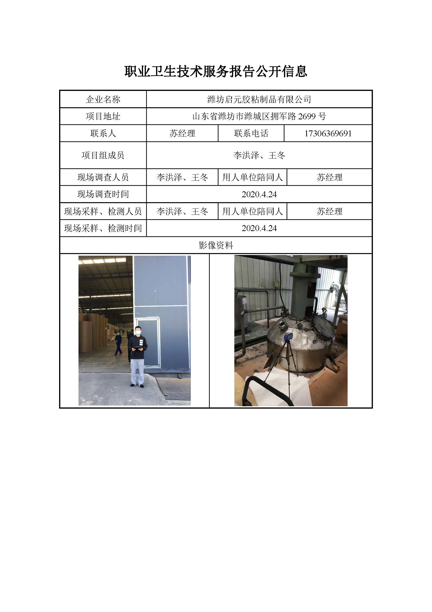 ZBZY20-DQ-113 潍坊启元胶粘制品有限公司职业病危害因素定期检测