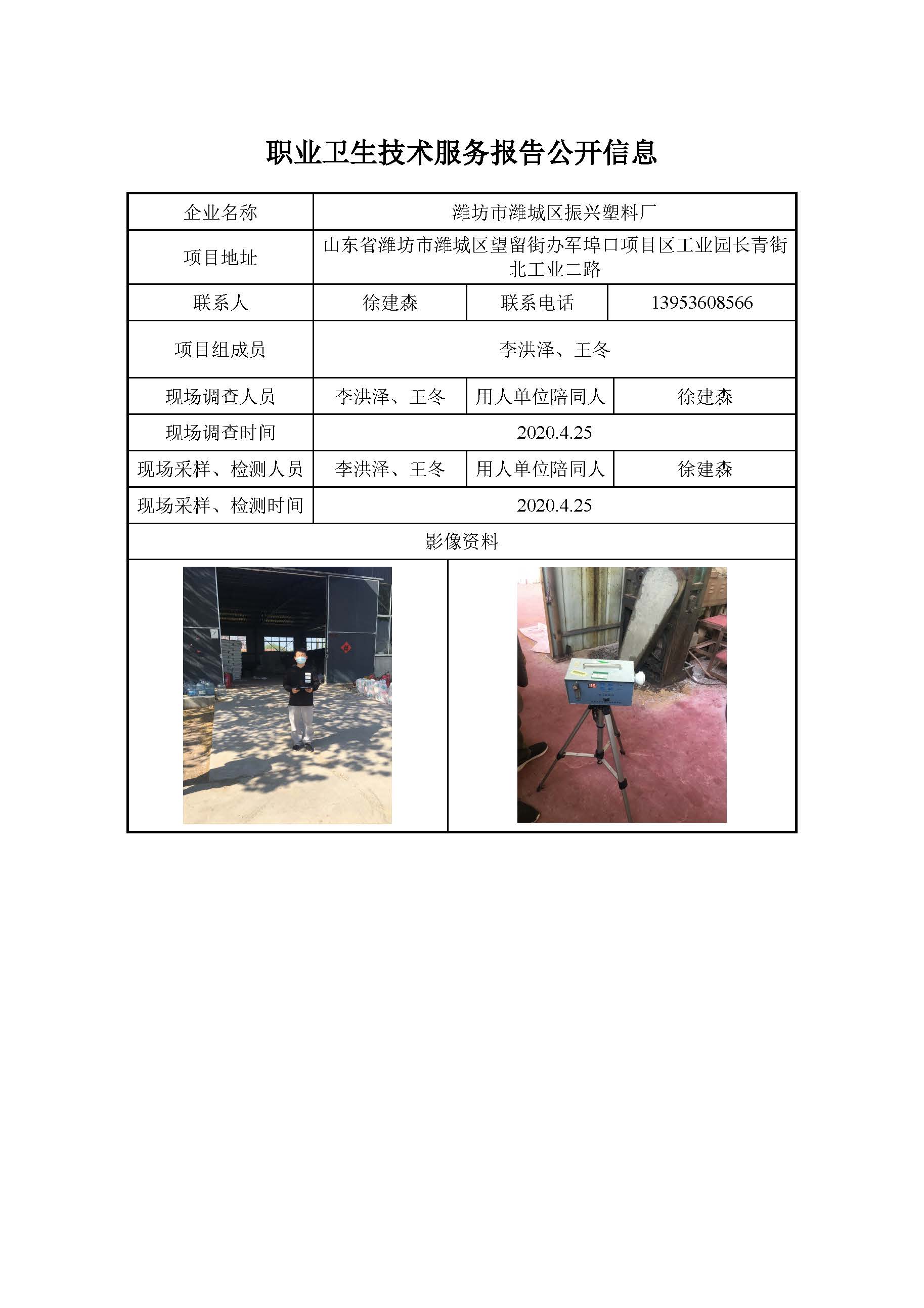 ZBZY20-DQ-114 潍坊市潍城区振兴塑料厂职业病危害因素定期检测