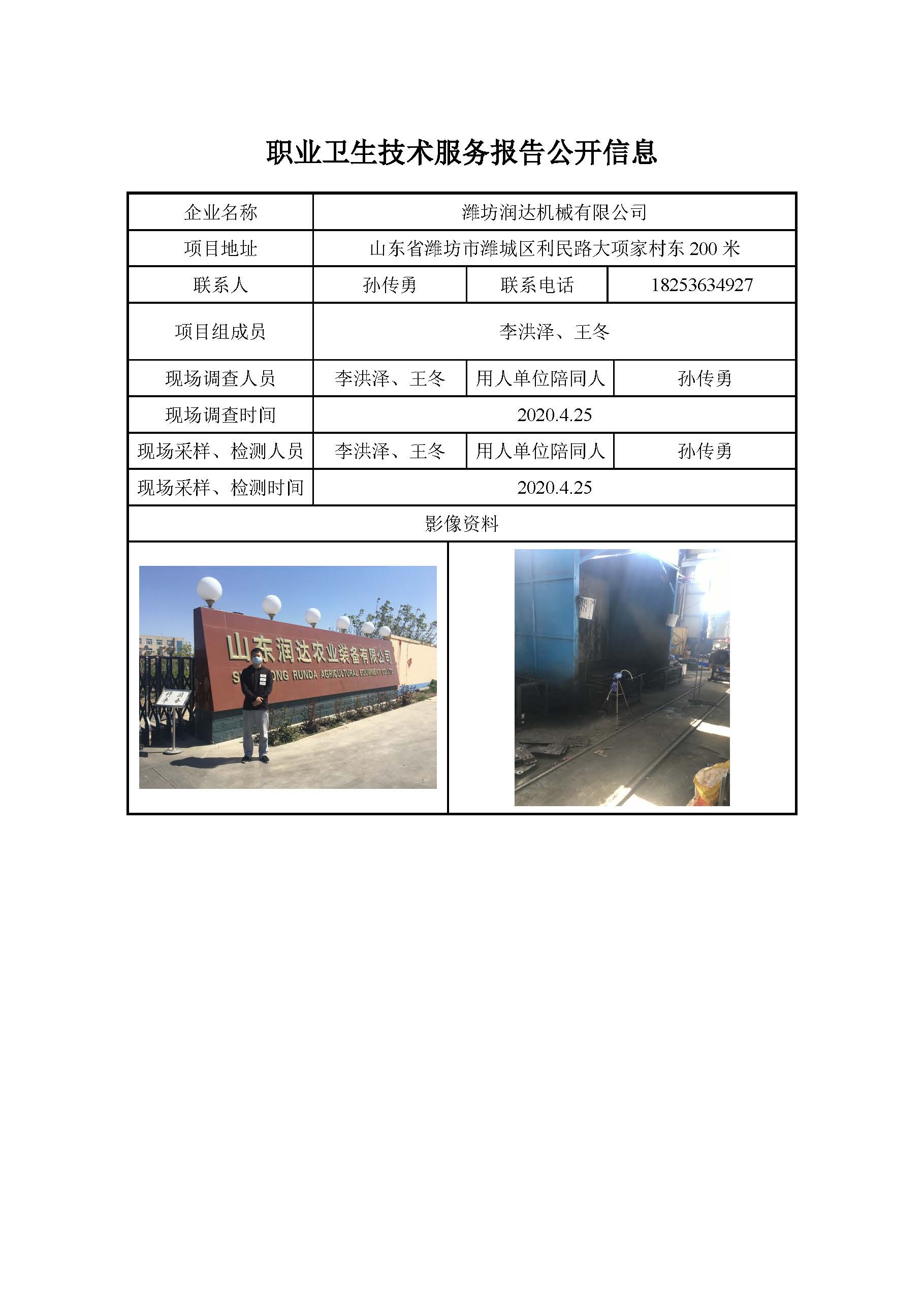 ZBZY20-DQ-115 潍坊润达机械有限公司职业病危害因素定期检测