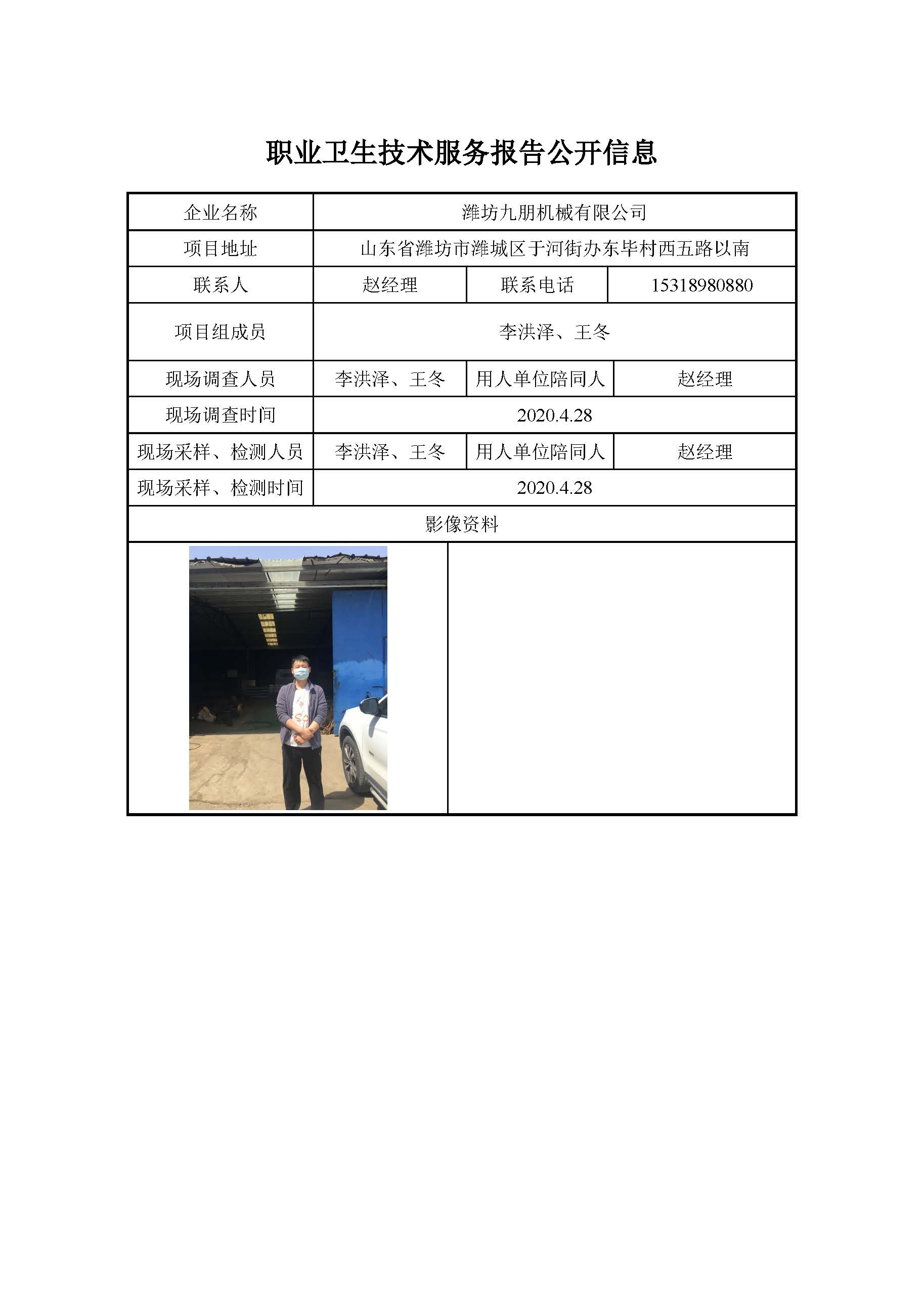 ZBZY20-DQ-120 潍坊九朋机械有限公司职业病危害因素定期检测