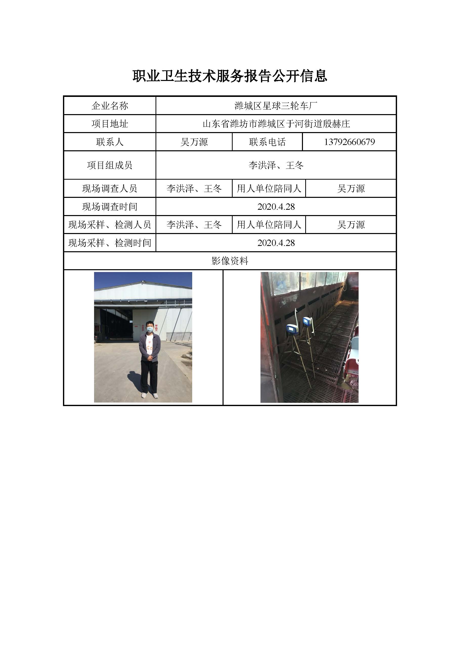 ZBZY20-DQ-121 潍城区星球三轮车厂职业病危害因素定期检测