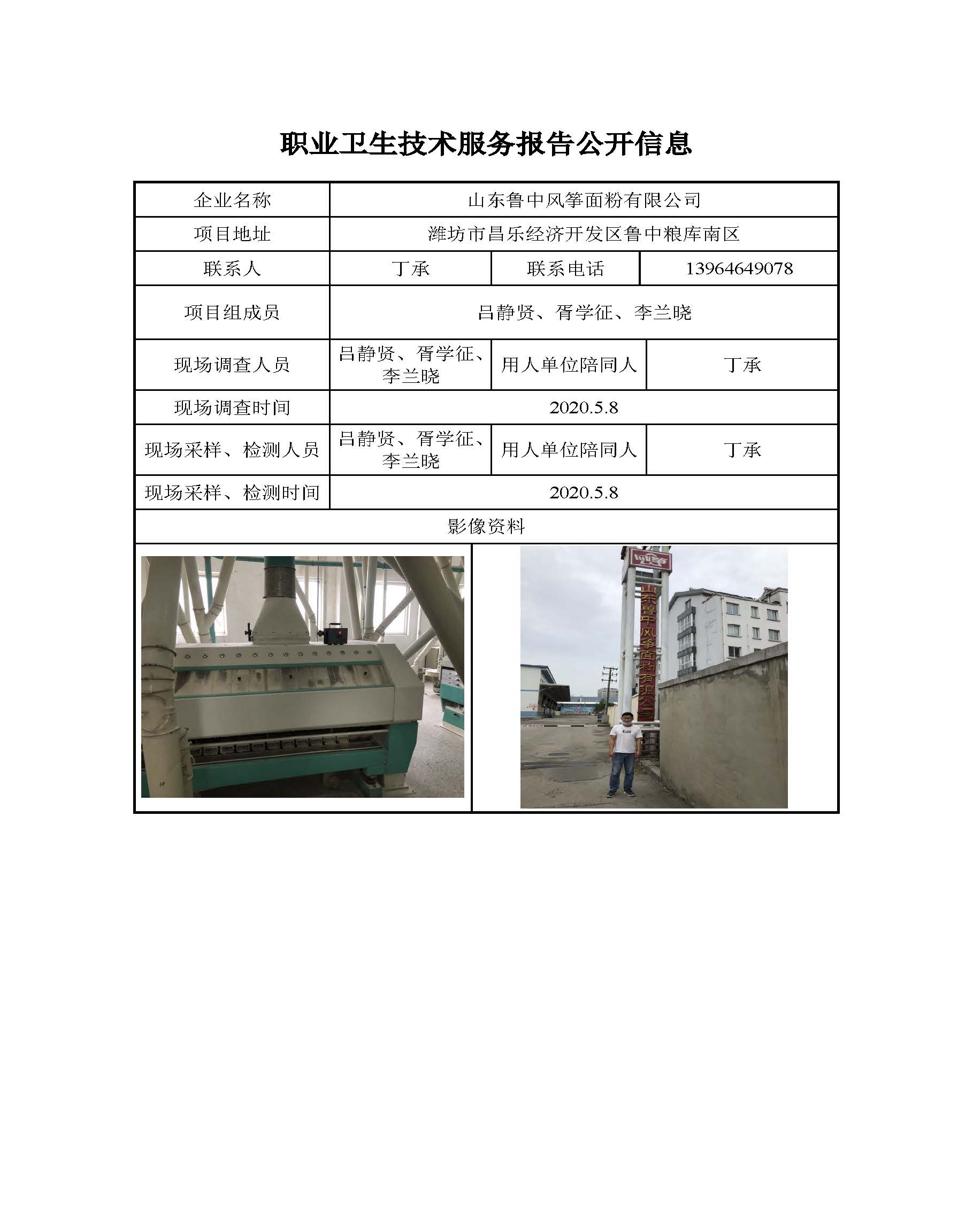 ZBZY20-DQ-128山东鲁中风筝面粉有限公司 职业病危害因素定期检测