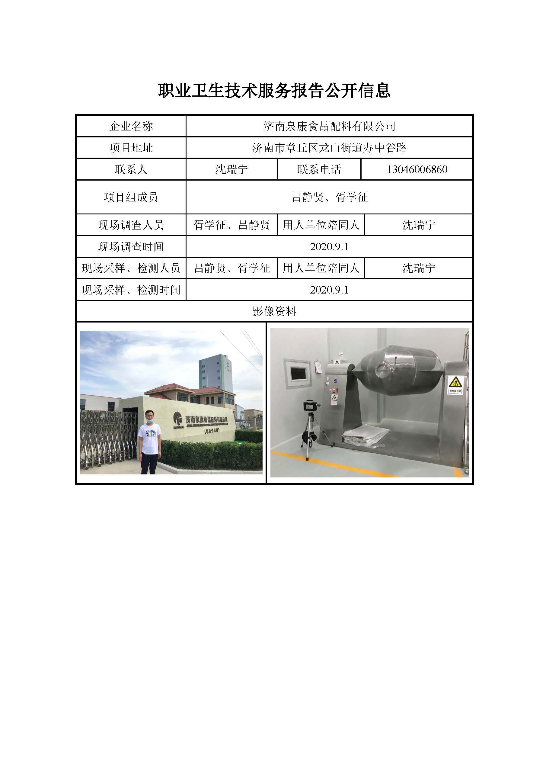 ZBZY20-DQ-140济南泉康食品配料有限公司章丘分公司日常检测报告