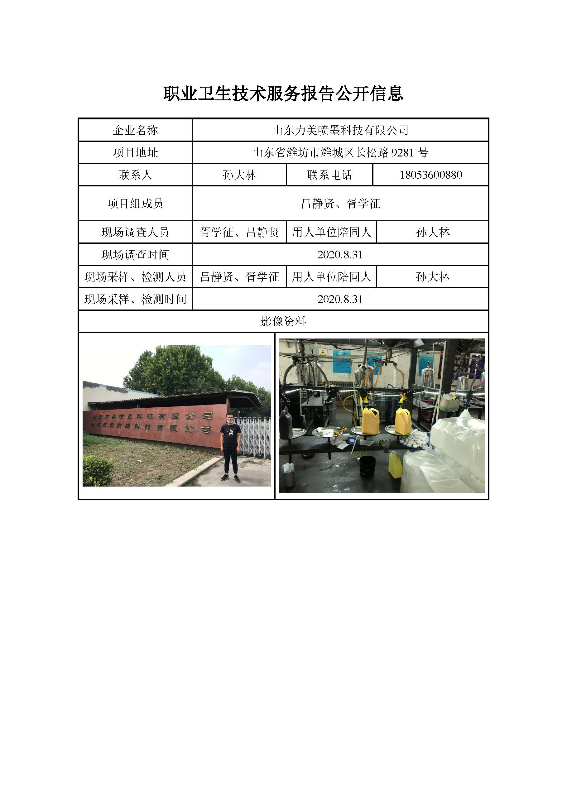 ZBZY20-DQ-141山东力美喷墨科技有限公司日常检测报告