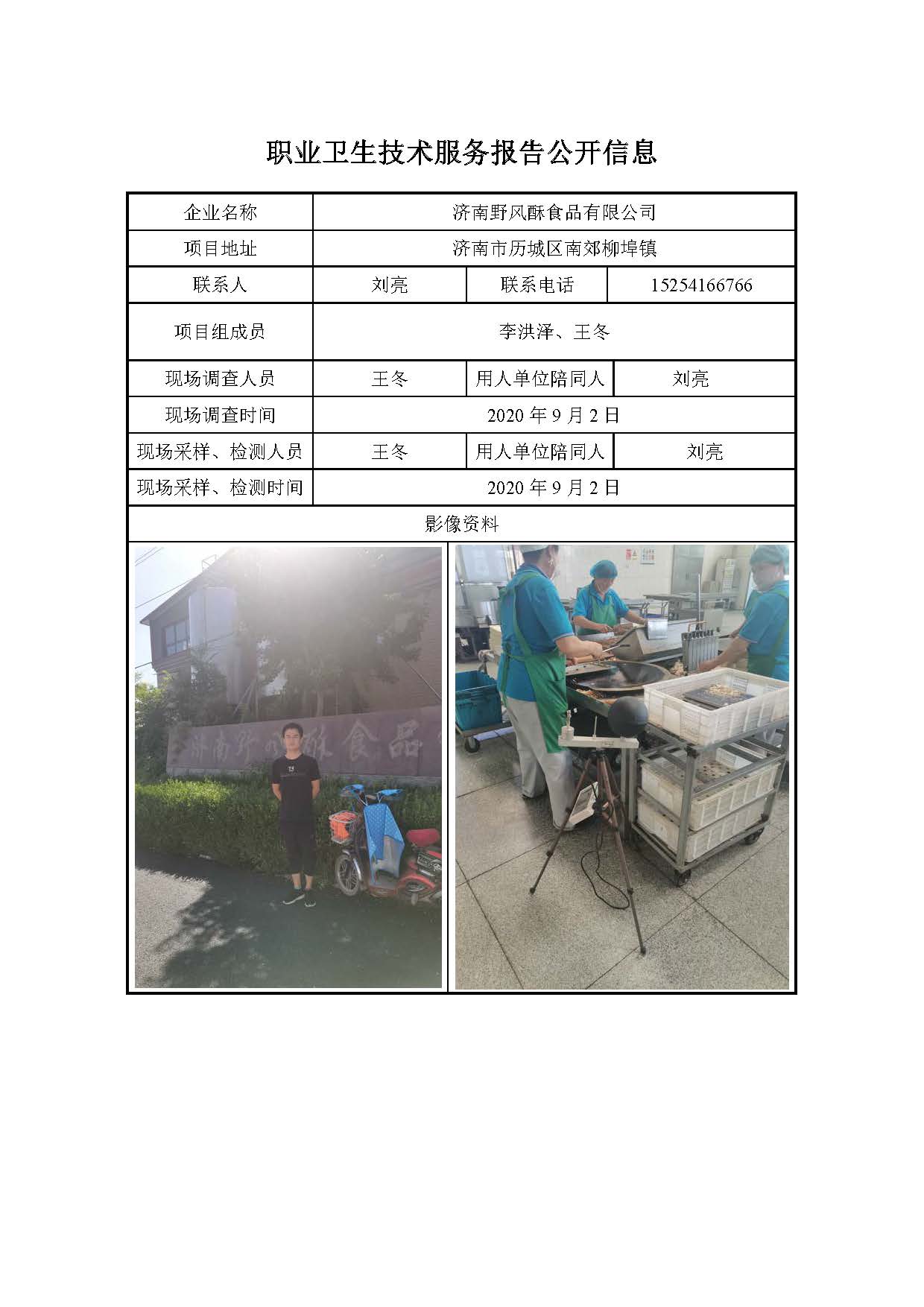 ZBZY20-DQ-143济南野风酥食品有限公司职业病危害因素定期检测