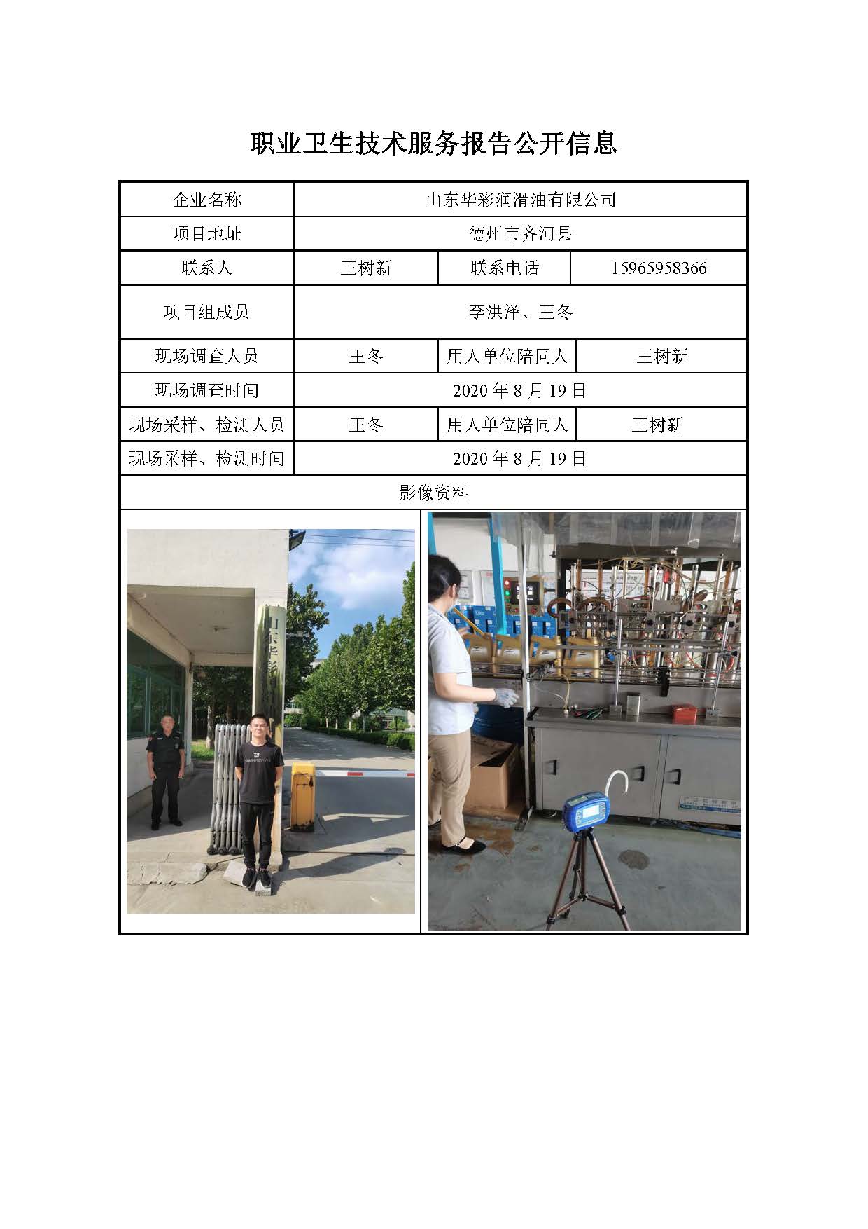 ZBZY20-DQ-147山东华彩润滑油有限公司职业病危害因素定期检测