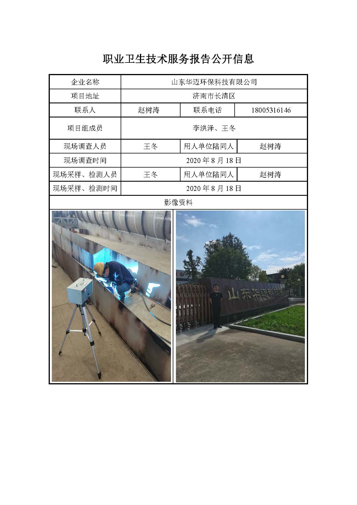 ZBZY20-DQ-149山东华迈环保科技有限公司职业病危害因素定期检测