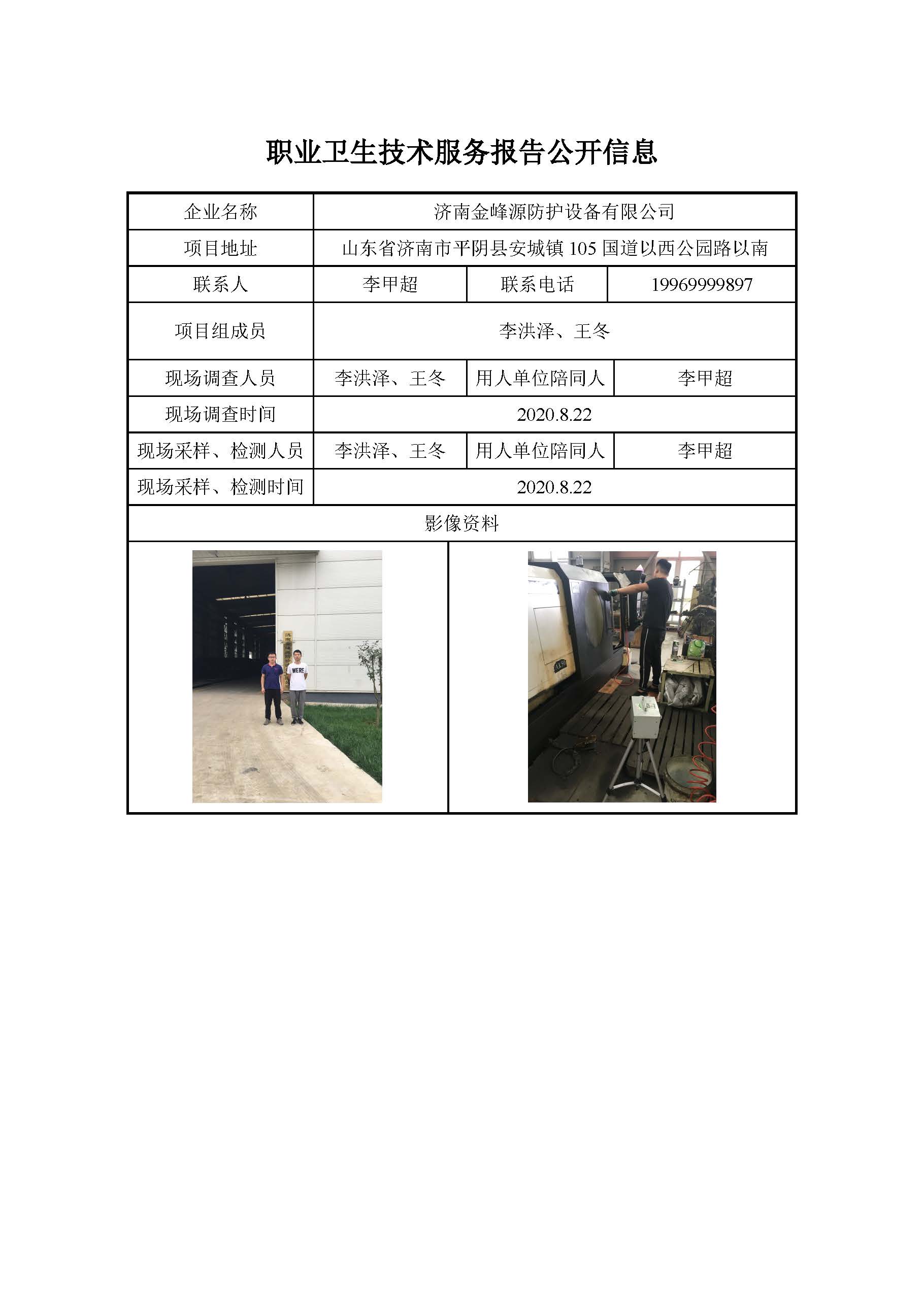 ZBZY20-DQ-160 济南金峰源防护设备有限公司职业病危害因素定期检测
